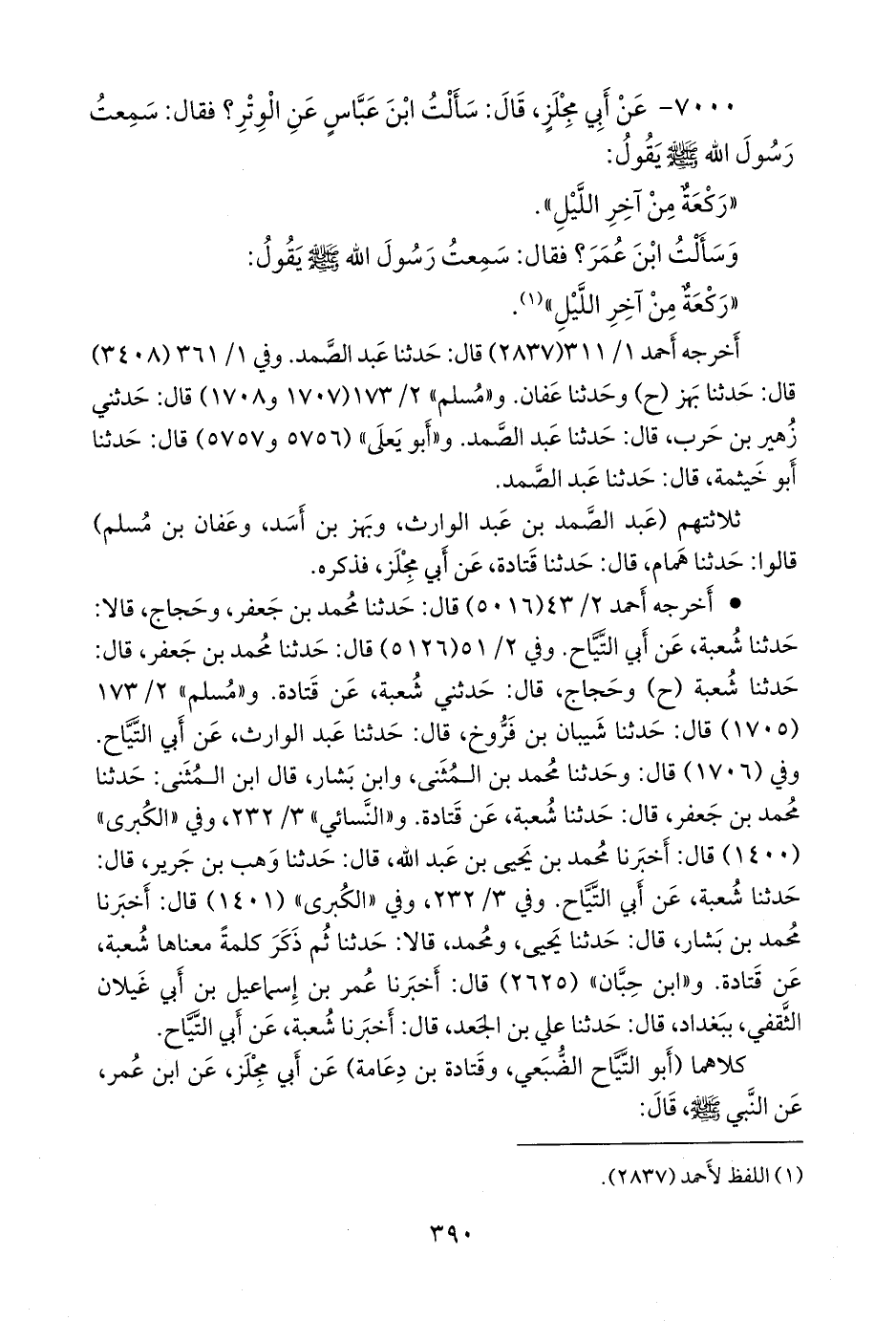 ٧٠٠٠ - عن أبي مجلز، قال: سألت ابن عباس عن الوتر؟ فقال: سمعت رسول الله صَلى الله عَليه وسَلم يقول: