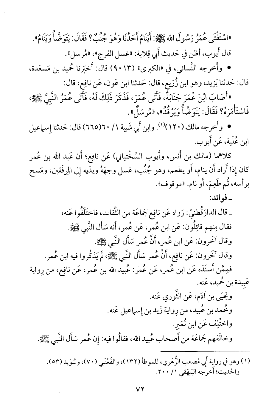 - قال الدارقُطني: رواه عن نافع جماعة من الثقات، فاختلفوا عنه؛