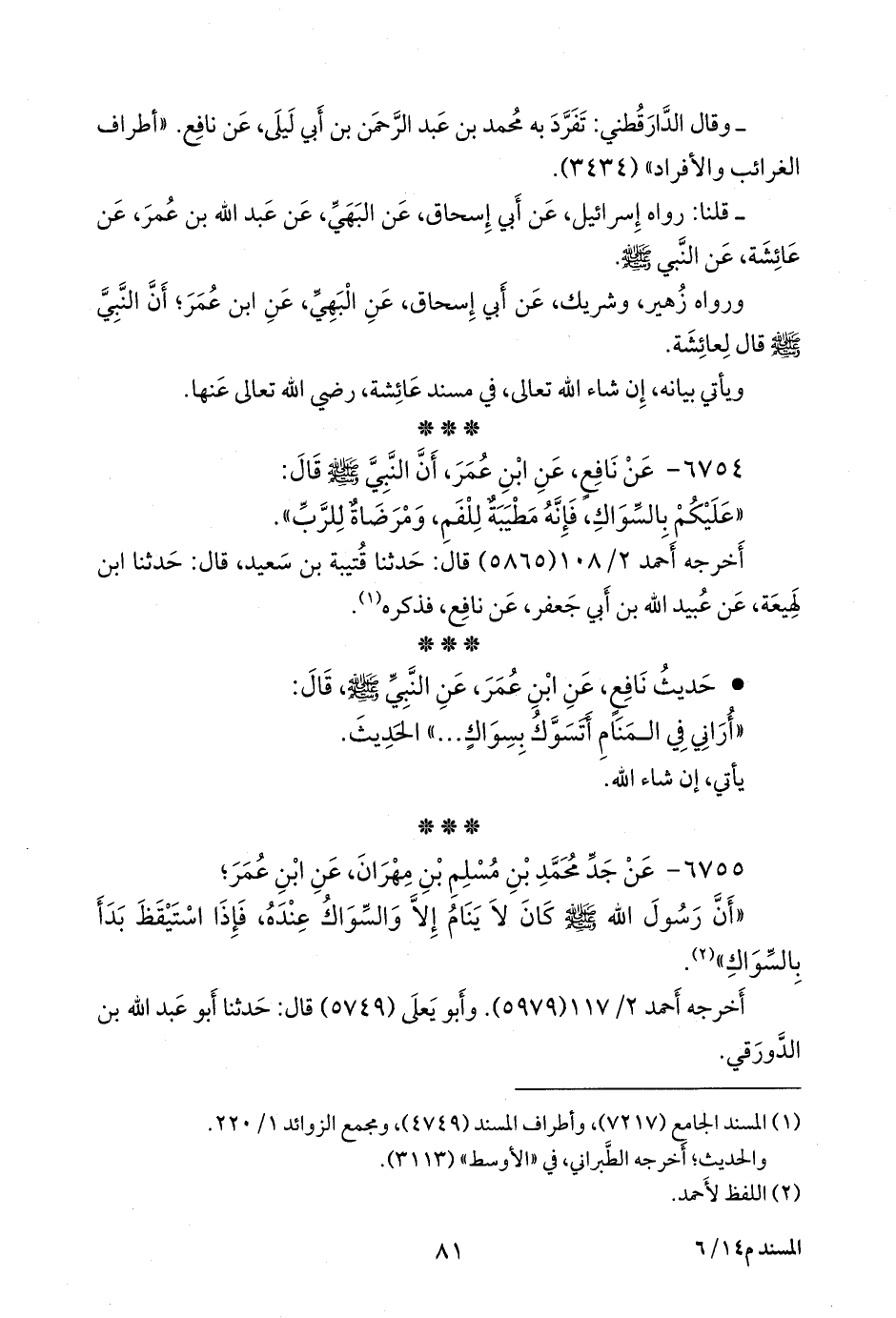 (¬١) المسند الجامع (٧٢١٧)، وأطراف المسند (٤٧٤٩)، ومَجمَع الزوائد ١/ ٢٢٠.