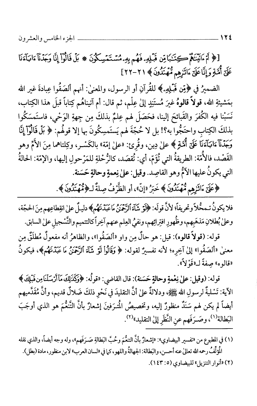 [{أَمْ آتَيْناهُمْ كِتابًا مِنْ قَبْلِهِ فَهُمْ بِهِ مُسْتَمْسِكُونَ * بَلْ قالُوا إِنَّا وَجَدْنا آباءَنا عَلى أُمَّةٍ وَإِنَّا عَلى آثارِهِمْ مُهْتَدُونَ} 21 - 22]