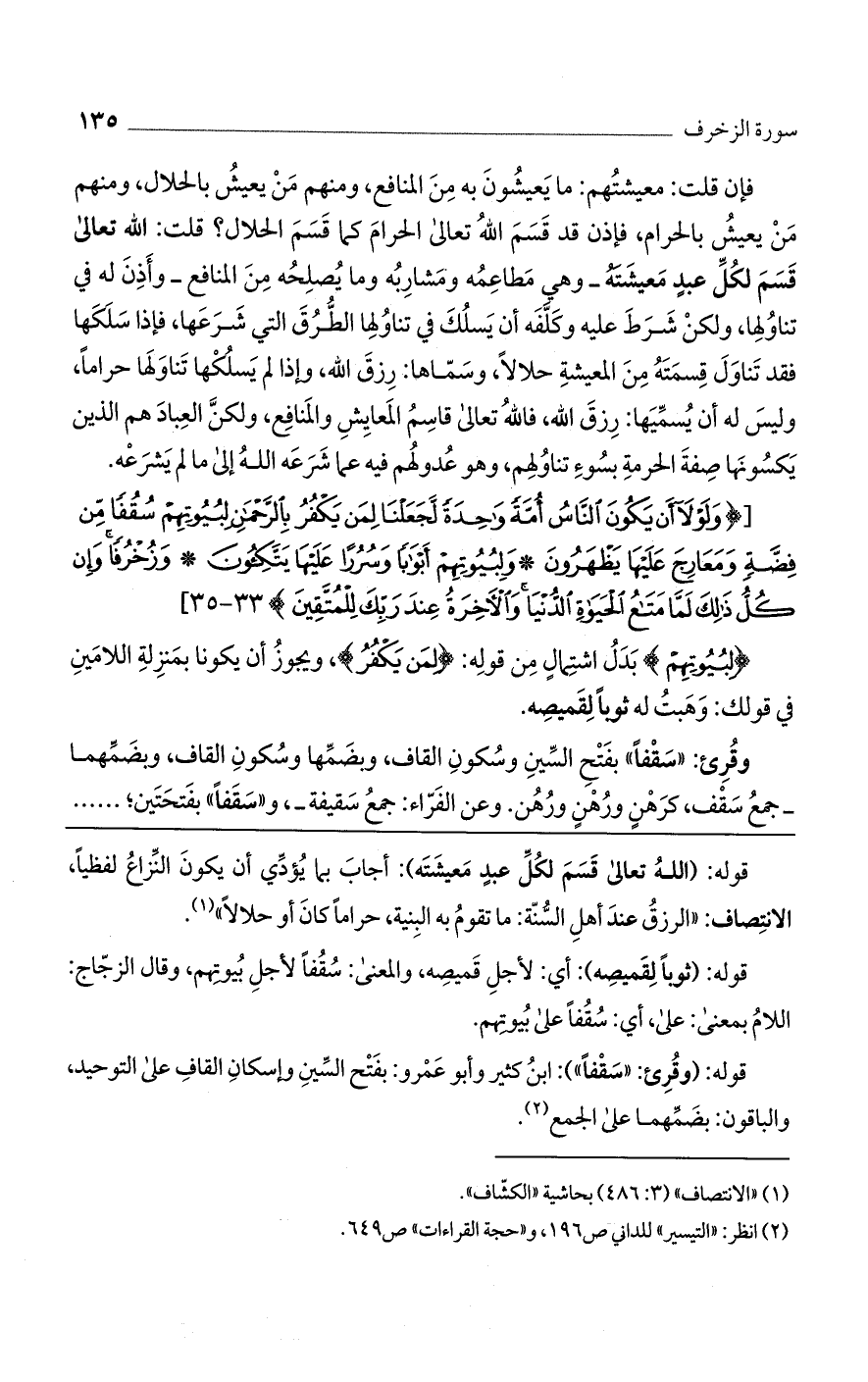 قوله: (وقرئ: "سقفًا"): ابن كثير وأبو عمرو: بفتح السين وإسكان القاف على التوحيد، والباقون: بضمهما على الجمع.