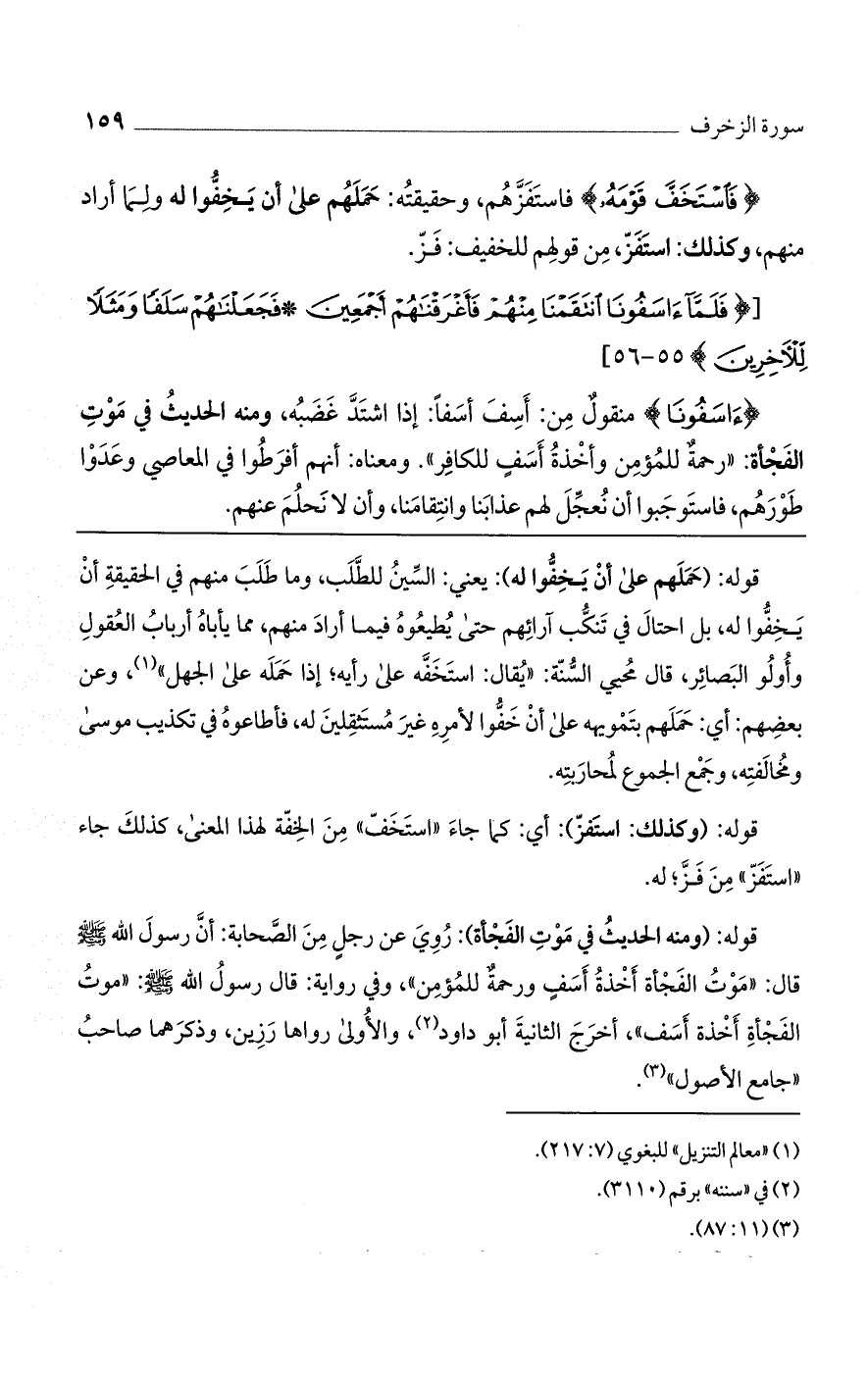 {فَاسْتَخَفَّ قَوْمَهُ} فاستفزهم، وحقيقته: حملهم على أن يخفوا له ولما أراد منهم، وكذلك: استفز، من قولهم للخفيف: فز.