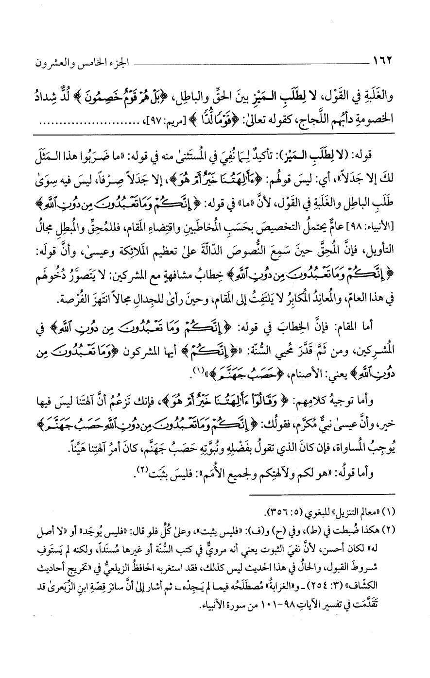 أما المقام: فإن الخطاب في قوله: {إِنَّكُمْ وَمَا تَعْبُدُونَ مِنْ دُونِ اللَّهِ} في المشركين، ومن ثم قدر محيي السنة " {إِنَّكُمْ} أيها المشركون {وَمَا تَعْبُدُونَ مِنْ دُونِ اللَّهِ} يعني: الأصنام، {حَصَبُ جَهَنَّمَ} ".