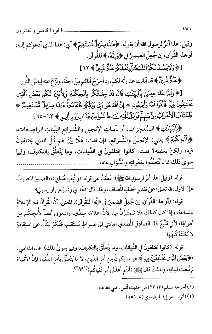 [{وَلَمَّا جاءَ عِيسى بِالْبَيِّناتِ قالَ قَدْ جِئْتُكُمْ بِالْحِكْمَةِ وَلِأُبَيِّنَ لَكُمْ بَعْضَ الَّذِي تَخْتَلِفُونَ فِيهِ فَاتَّقُوا اللَّهَ وَأَطِيعُونِ * إِنَّ اللَّهَ هُوَ رَبِّي وَرَبُّكُمْ فَاعْبُدُوهُ هذا صِراطٌ مُسْتَقِيمٌ * فَاخْتَلَفَ الْأَحْزابُ مِنْ بَيْنِهِمْ فَوَيْلٌ لِلَّذِينَ ظَلَمُوا مِنْ عَذابِ يَوْمٍ أَلِيمٍ} 63 - 65]