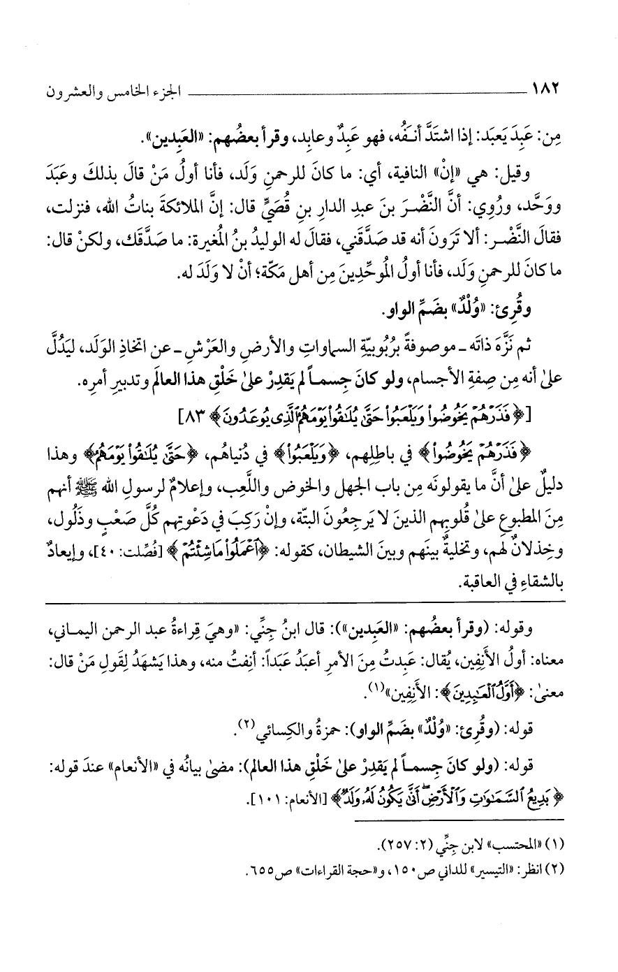 قوله: (وقرئ: "ولد" بضم الواو): حمزة والكسائي.