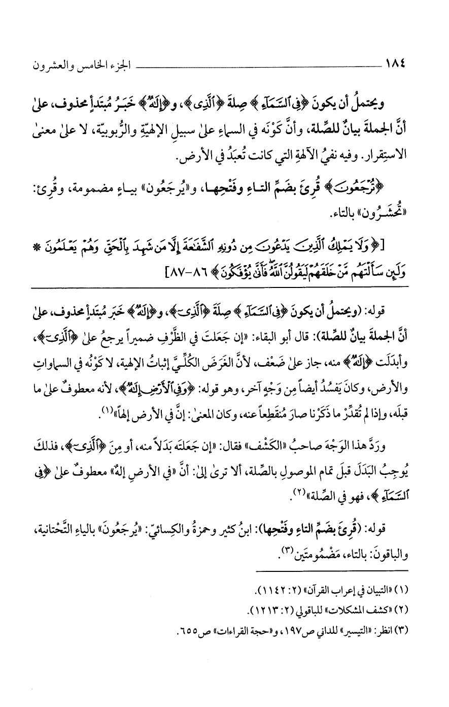 ورد هذا الوجه صاحب "الكشف" فقال: "إن جعلته بدلًا منه، أو من {الَّذِي}، فذلك يوجب البدل قبل تمام الموصول بالصلة، ألا ترى إلى: أن "في الأرض إله" معطوف على {فِي السَّمَاءِ}، فهو في الصلة".
