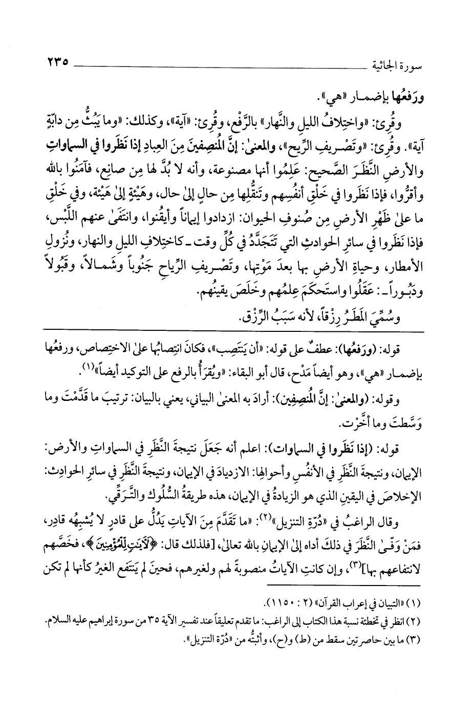 قوله: (ورفعها): عطف على قوله: "أن ينتصب"، فكان انتصابها على الاختصاص، ورفعها بإضمار "هي"، وهو أيضًا مدح، قال أبو البقاء: "ويقرأ بالرفع على التوكيد أيضًا".