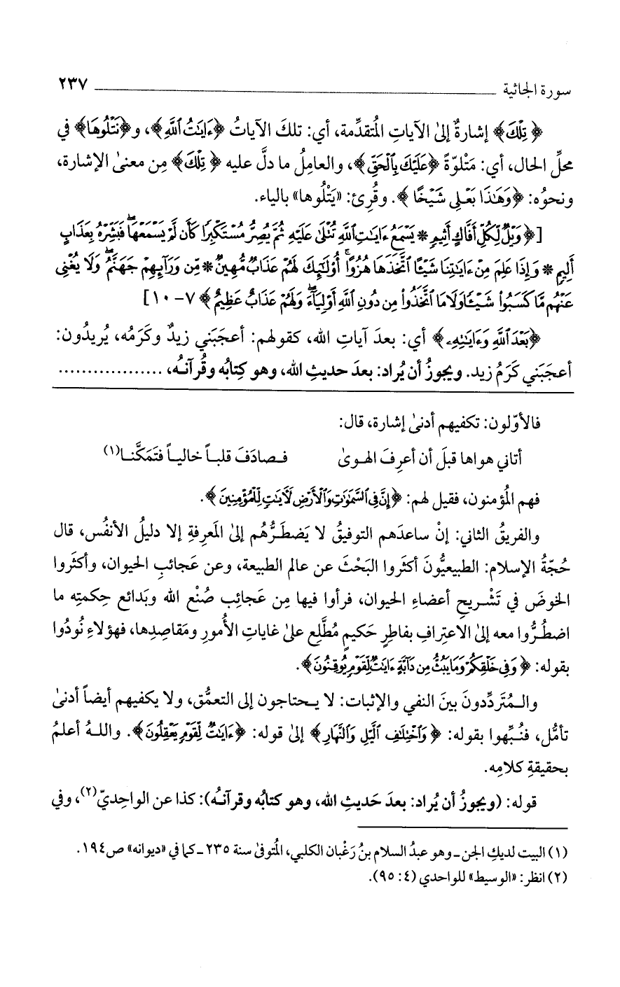 قوله: (ويجوز أن يراد: بعد حديث الله، وهو كتابه وقرآنه): كذا عن الواحدي، وفي