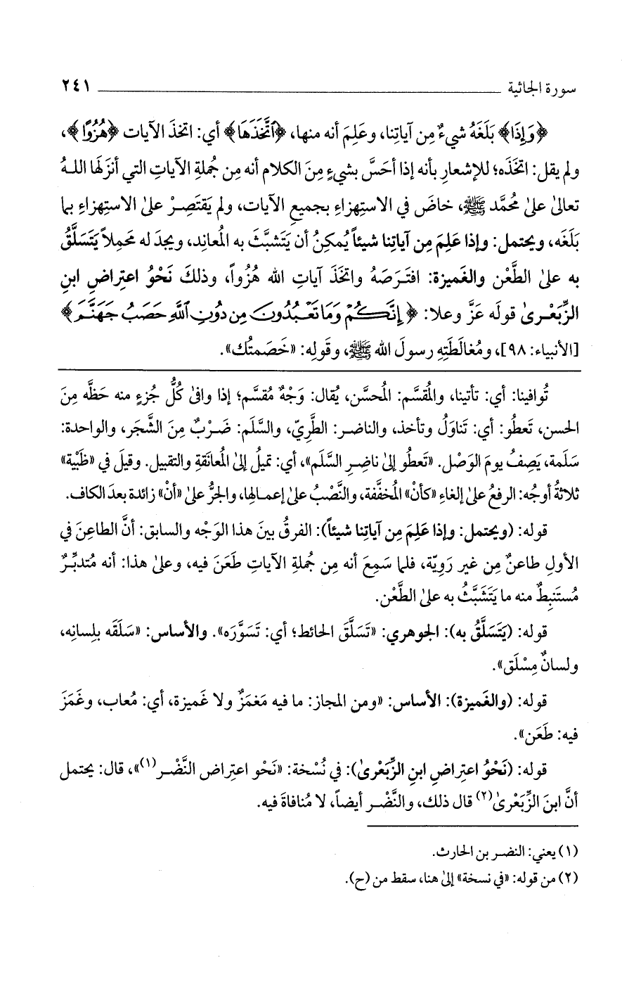 قوله: (نحو اعتراض ابن الزبعرى): في نسخة: "نحو اعتراض النضر"، قال: يحتمل أن ابن الزبعرى قال ذلك، والنضر أيضًا، لا منافاة فيه.