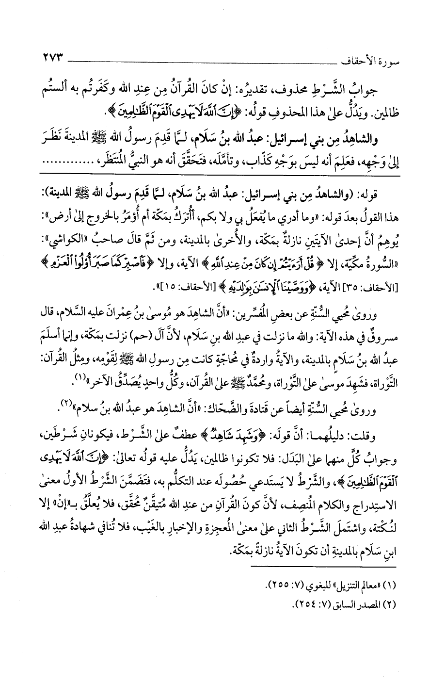 وروى محيي السنة أيضًا عن قتادة والضحاك: " أن الشاهد هو عبد الله بن سلام".