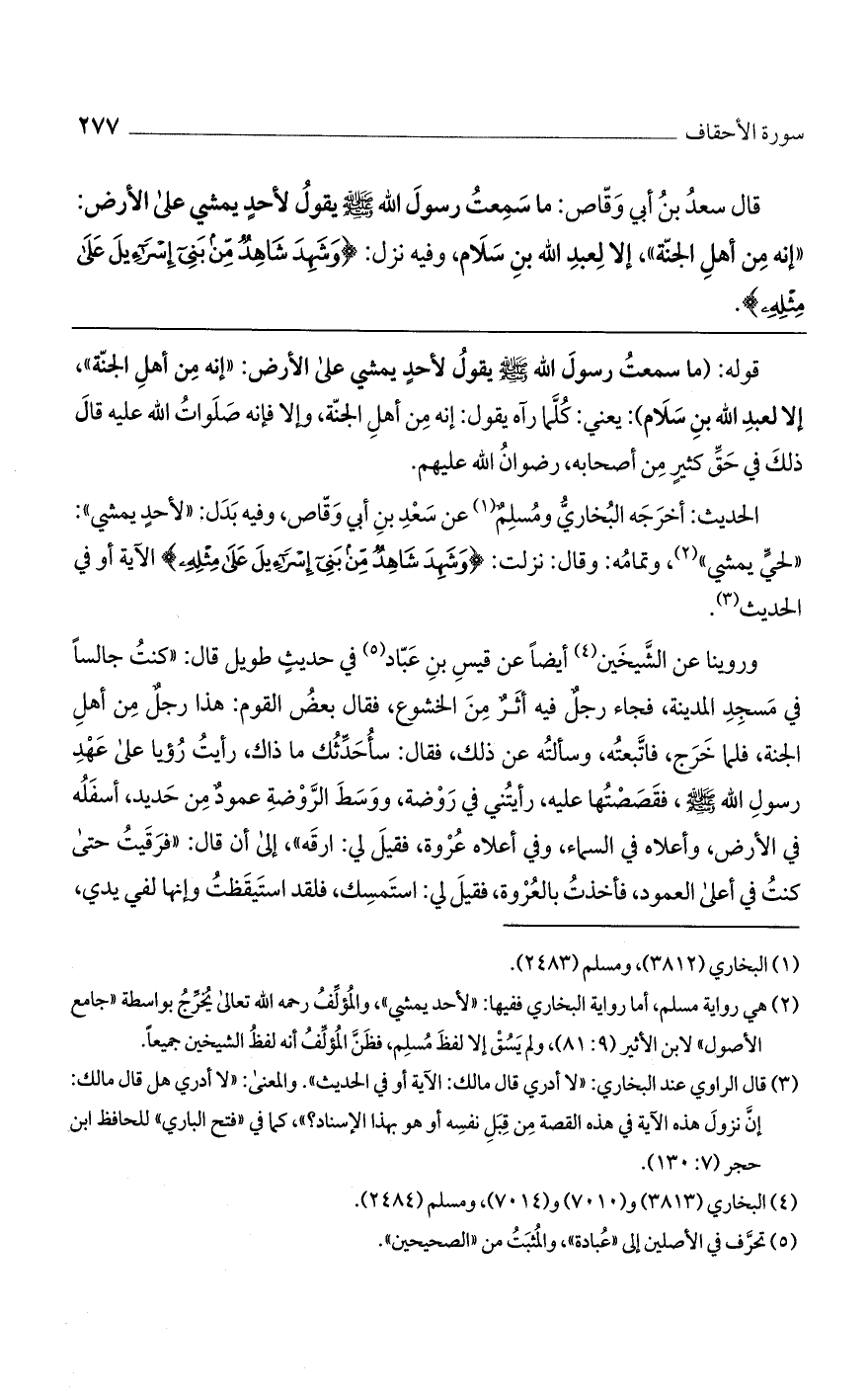 قوله: (ما سمعت رسول الله صلى الله عليه وسلم يقول لأحد يمسي على الأرض: "إنه من أهل الجنة"، إلا لعبد الله بن سلام): يعني: كلما رآه يقول: إنه من أهل الجنة، وإلا فإنه صلوات الله عليه قال ذلك في حق كثير من أصحابه، رضوان الله عليهم.