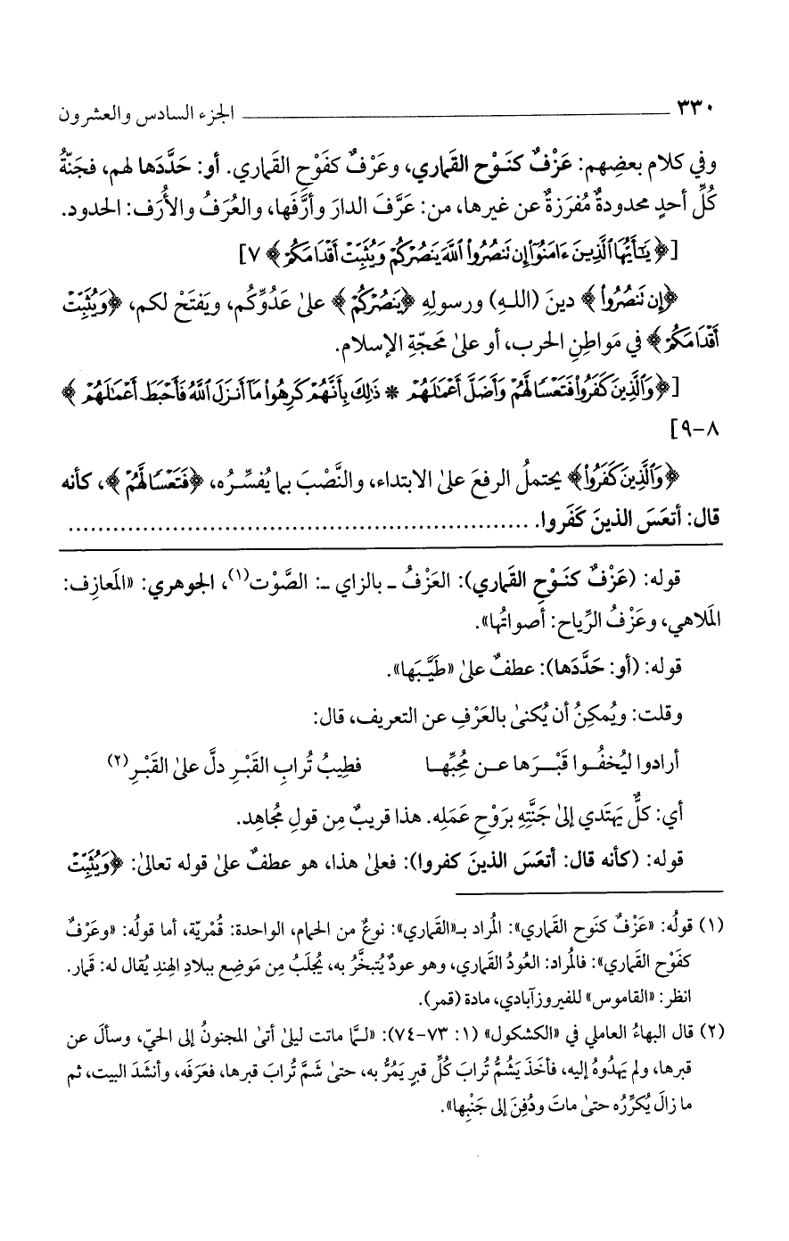 قوله: (كأنه قال: أتعس الذين كفروا): فعلى هذا، هو عطف على قوله تعالى: {وَيُثَبِّتْ