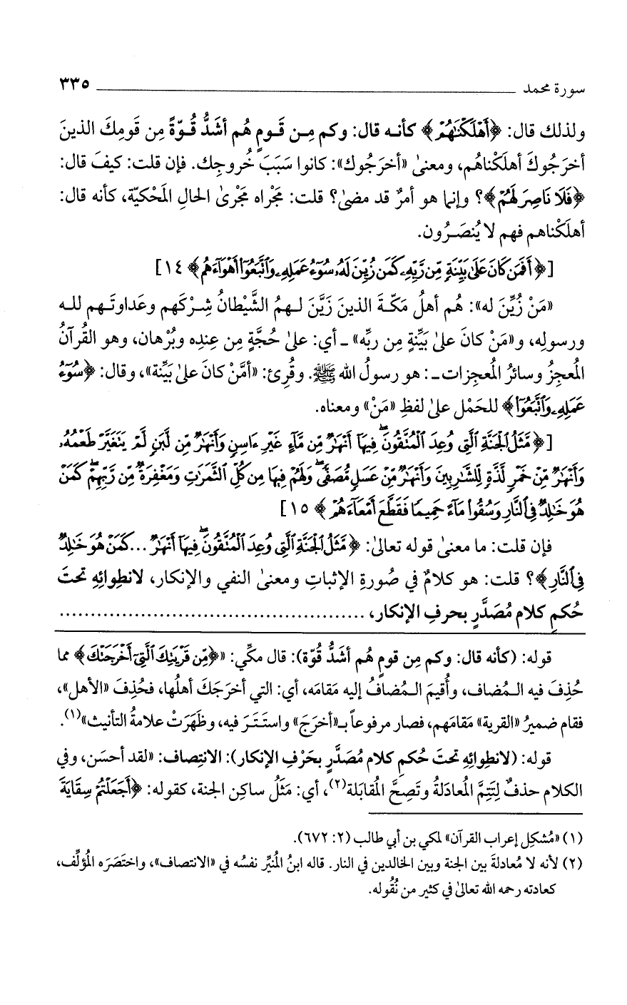 قوله: (كأنه قال: وكم من قوم هم أشد قوة): قال مكي: " {مِّن قَرْيَتِكَ الَّتِي أَخْرَجَتْكَ} مما حذف فيه المضاف، وأقيم المضاف إليه مقامه، أي: التي أخرجك أهلها، فحذف"الأهل"، فقام ضمير"القرية" مقامهم، فصار مرفوعًا ب"أخرج" واستتر فيه، وظهرت علامة التأنيث".