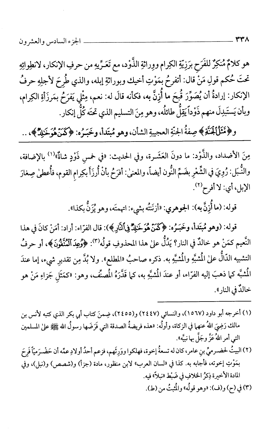 من الأضداد، والذود: ما دون العشرة، وفي الحديث: "في خمس ذود شاة" بالإضافة، والنبل: روي في الشعر بضم النون أيضًا، والمعنى: أفرح بأن أرزأ بكرام القوم، فأعطى صغار الإبل، أي: لا أفرح.