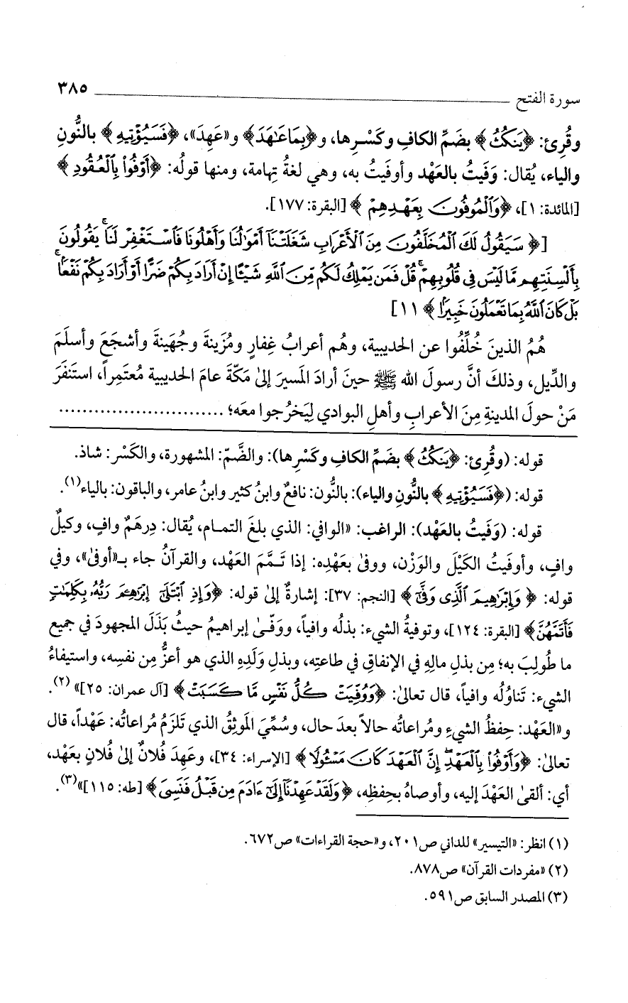 قوله: (وفيت بالعهد): الراغب: "الوافي: الذي بلغ التمام، يقال: درهم واف، وكيل واف، واوفيت الكيل والوزن، ووفى بعهده: إذا تمم العهد، والقرآن جاء ب"أوفى"، وفي قوله: {وَإِبْرَاهِيمَ الَّذِي وَفَّى} [النجم: 37]: إشارة إلى قوله: {وَإِذِ ابْتَلَى إِبْرَاهِيمَ رَبُّهُ بِكَلِمَاتٍ فَأَتَمَّهُنَّ} [البقرة: 124]، وتوفية الشيء: بذله وافيًا، ووفى إبراهيم حيث بذل المجهود في جميع ما طولب به؛ من بذل ماله في الإنفاق في طاعته، وبذل ولده الذي هو أعز من نفسه، واستيفاء الشيء: تناوله وافيًا، قال تعالى: {وَوُفِّيَتْ كُلُّ نَفْسٍ مَا كَسَبَتْ} [آل عمران: 25] ". و"العهد: حفظ الشيء وماعاته حالًا بعد حال، وسمي الموثق الذي تلزم مراعاته: عهدًا، قال تعالى: {وَأَوْفُوا بِالْعَهْدِ إِنَّ الْعَهْدَ كَانَ مَسْئُولًا} [الإسراء: 34]، وعهد فلان إلى فلان بعهد، أي: ألقى العهد إليه، وأوصاه بحفظه، {وَلَقَدْ عَهِدْنَا إِلَى آَدَمَ مِنْ قَبْلُ فَنَسِيَ} [طه: 115] ".
