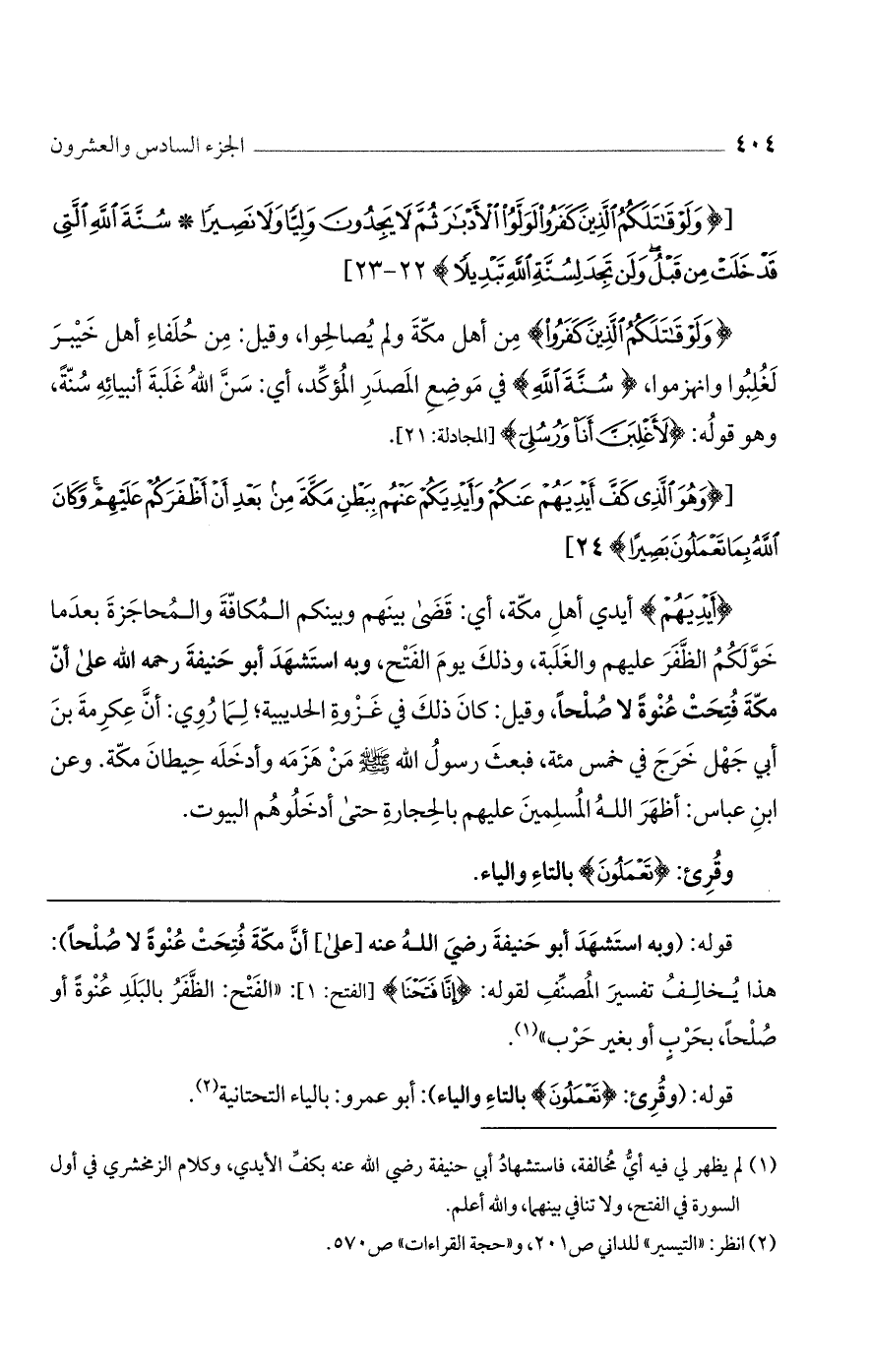 [{وَهُوَ الَّذِي كَفَّ أَيْدِيَهُمْ عَنْكُمْ وَأَيْدِيَكُمْ عَنْهُمْ بِبَطْنِ مَكَّةَ مِنْ بَعْدِ أَنْ أَظْفَرَكُمْ عَلَيْهِمْ وَكانَ اللَّهُ بِما تَعْمَلُونَ بَصِيرًا} 24]