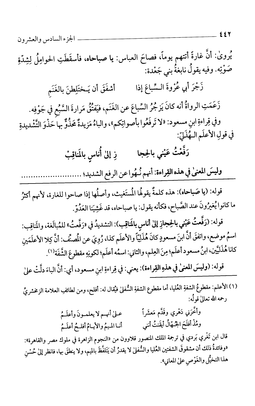 وفي قراءة ابن مسعود: "لا ترفعوا بأصواتكم"، والباء مزيدة محذوّ بها حذو التشديد في قول الأعلم الهذلي: