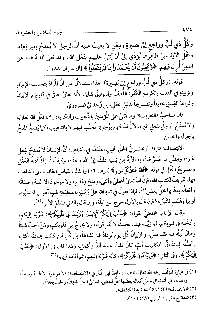 قال صاحب "التقريب": وما أثنى على المؤمنين بالتحبيب والتكريه، وهما فعل الله تعالى، ولا يمدح الرجل بفعل غيره، لأن مدحهم بوجود المحبب فيهم لا بالتحبيب، كما يصح المدح بالجمال والحسن.