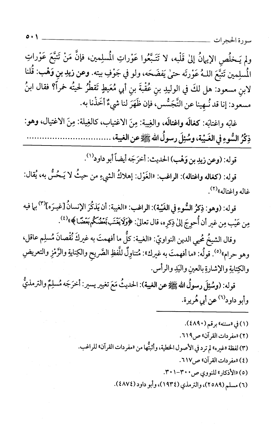 قوله: (وهو: ذكر السوء في الغيبة): الراغب: "الغيبة: أن يذكر الإنسان [غيره] بما فيه من عيب من غير أن أحوج إلى ذكره، قال تعالى: {ولا يَغْتَب بَّعْضُكُم بَعْضًا} ".