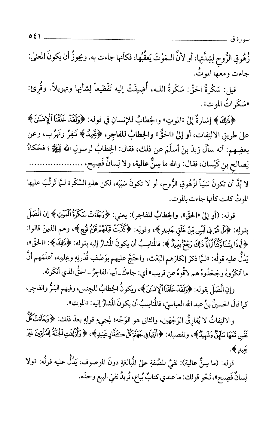 وإن اتصل بقوله: {ولَقَدْ خَلَقْنَا الإنسَانَ}، ويكون الخطاب للجنس، وفيهم البر والفاجر، كما قال الحسين بن عبد الله العباسي، فالمناسب أن يكون المشار إليه: "الموت".