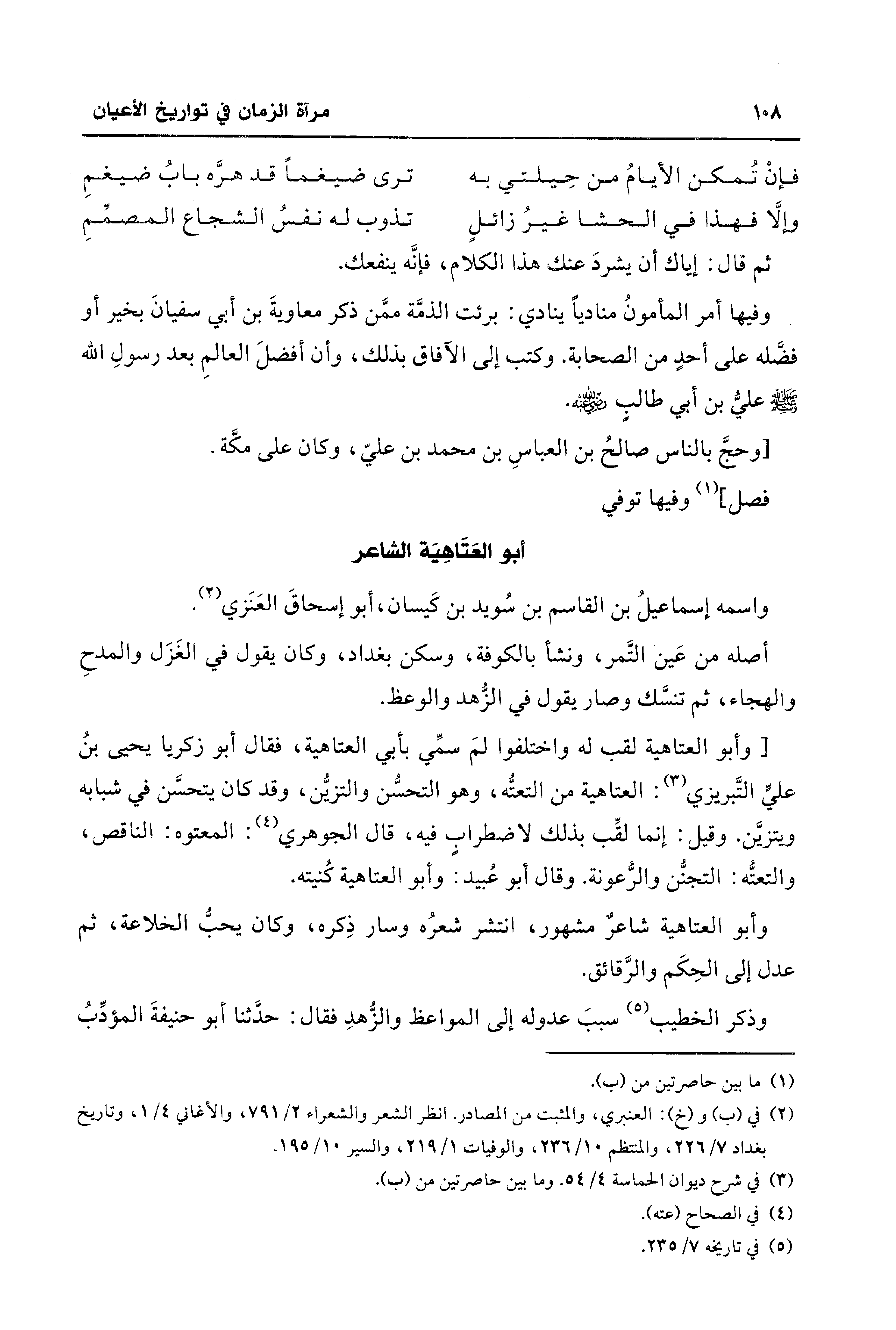 (¬2) في (ب) و (خ): العنبري، والمثبت من المصادر. انظر الشعر والشعراء 2/ 791، والأغاني 4/ 1، وتاريخ بغداد 7/ 226، والمنتظم 10/ 236، والوفيات 1/ 219، والسير 10/ 195.