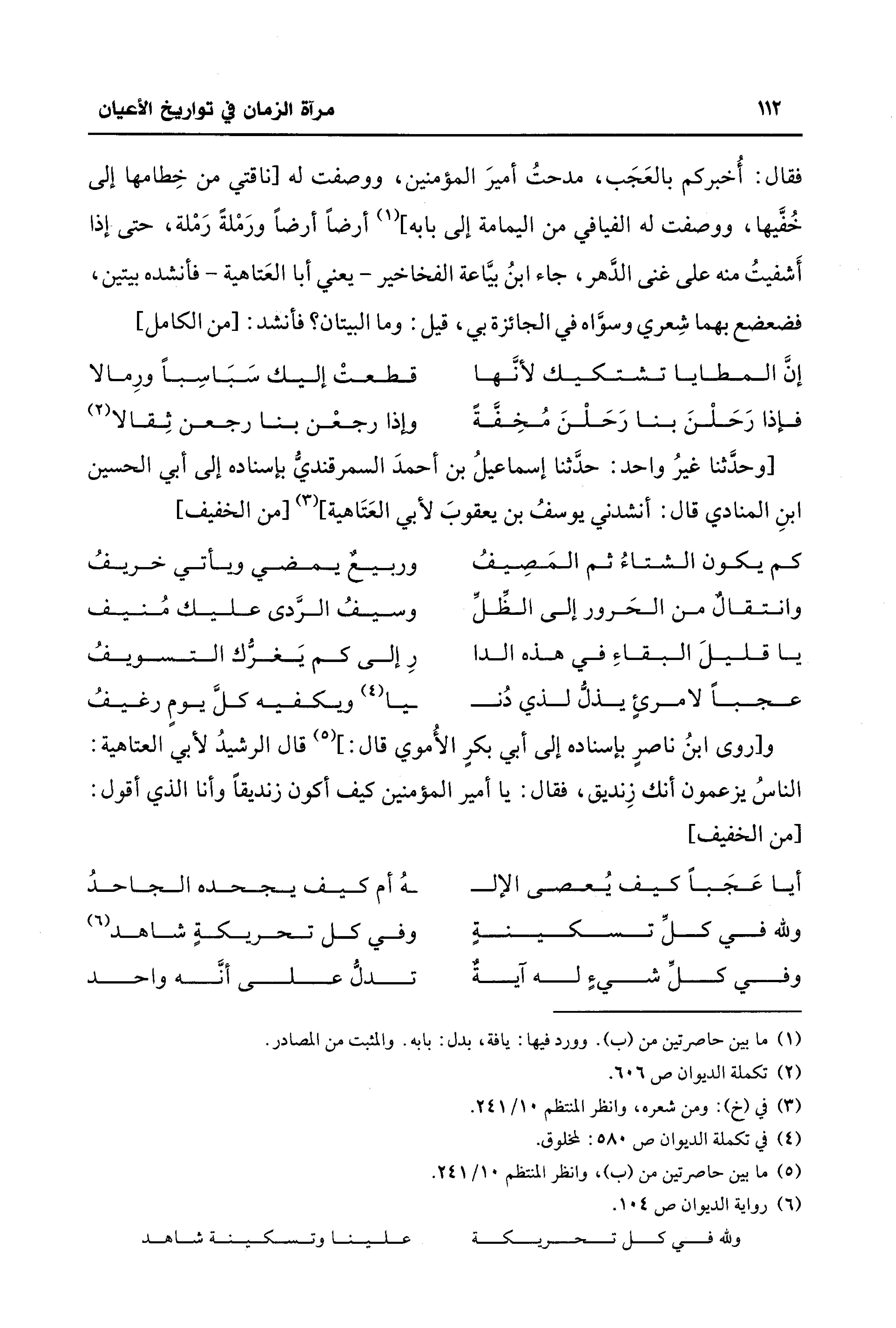 [وحدَّثنا غيرُ واحد: حدَّثنا إسماعيلُ بن أحمدَ السمرقنديُّ بإسناده إلى أبي الحسين بنِ المنادي قال: أنشدني يوسفُ بن يعقوبَ لأبي العَتَاهية] (¬3) [من الخفيف]