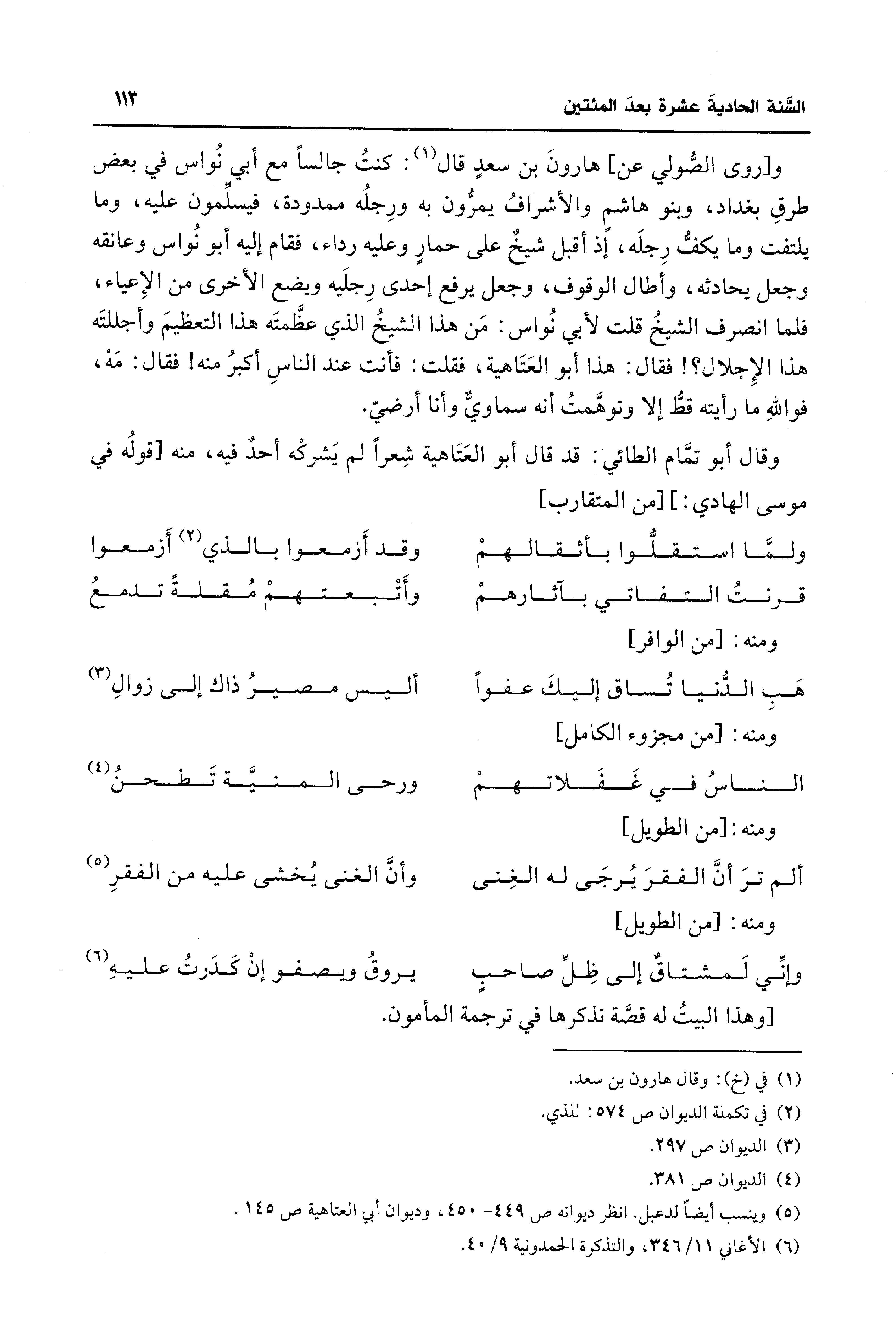 (¬6) الأغاني 11/ 346، والتذكرة الحمدونية 9/ 40.