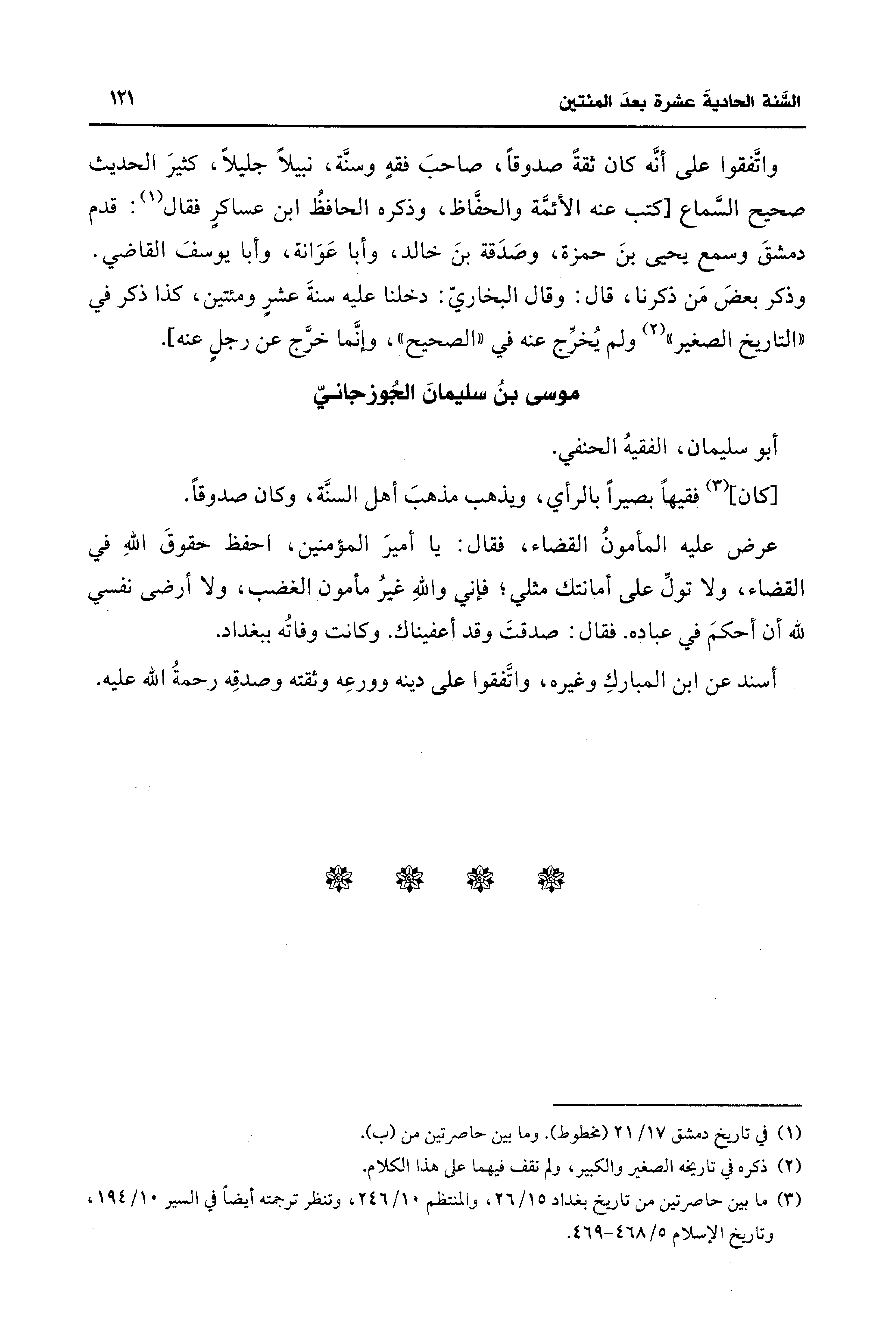 (¬3) ما بين حاصرتين من تاريخ بغداد 15/ 26، والمنتظم 10/ 246، وتنظر ترجمته أيضًا في السير 10/ 194، وتاريخ الإسلام 5/ 468 - 469.