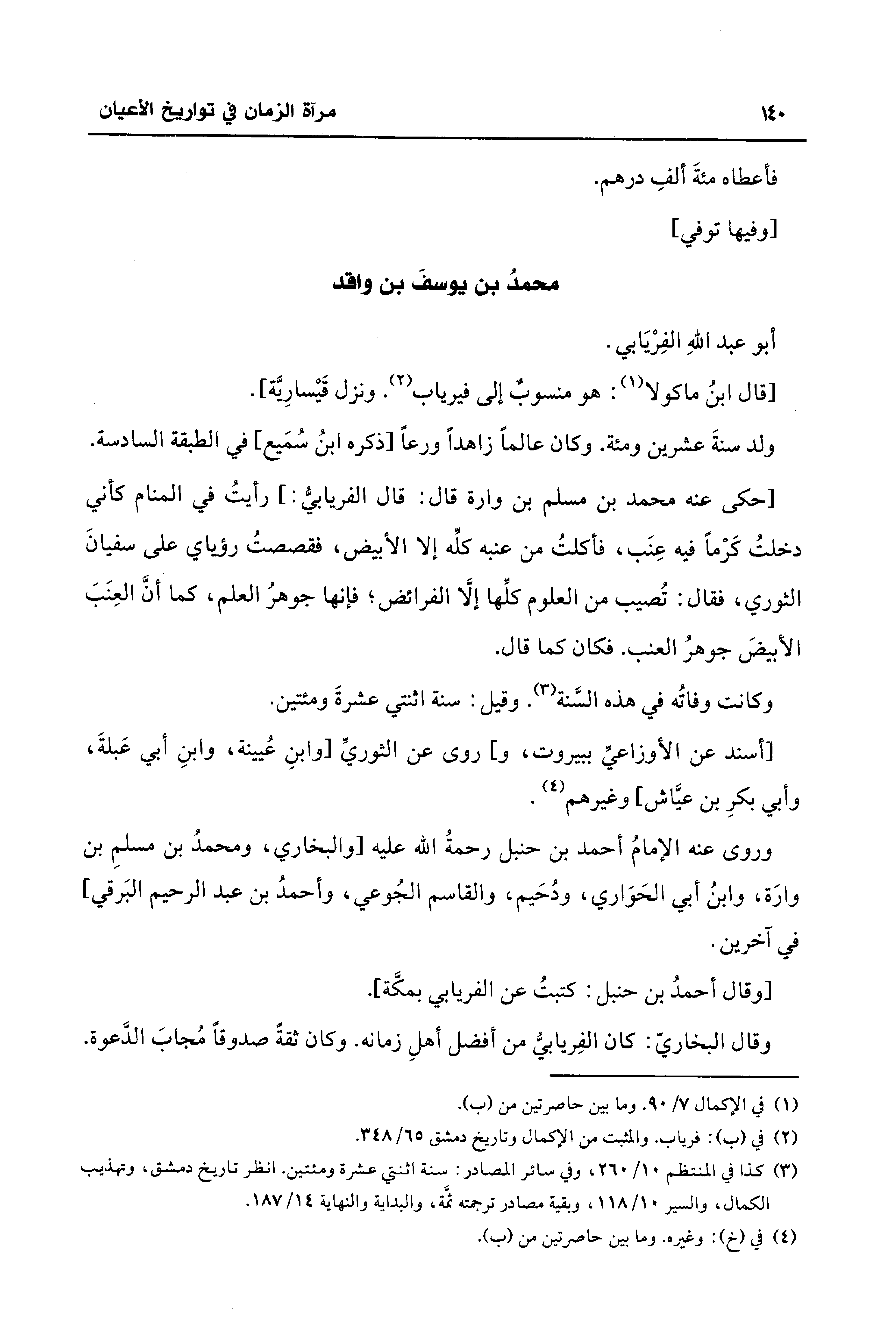 [وقال أحمدُ بن حنبل: كتبتُ عن الفريابي بمكَّة].
