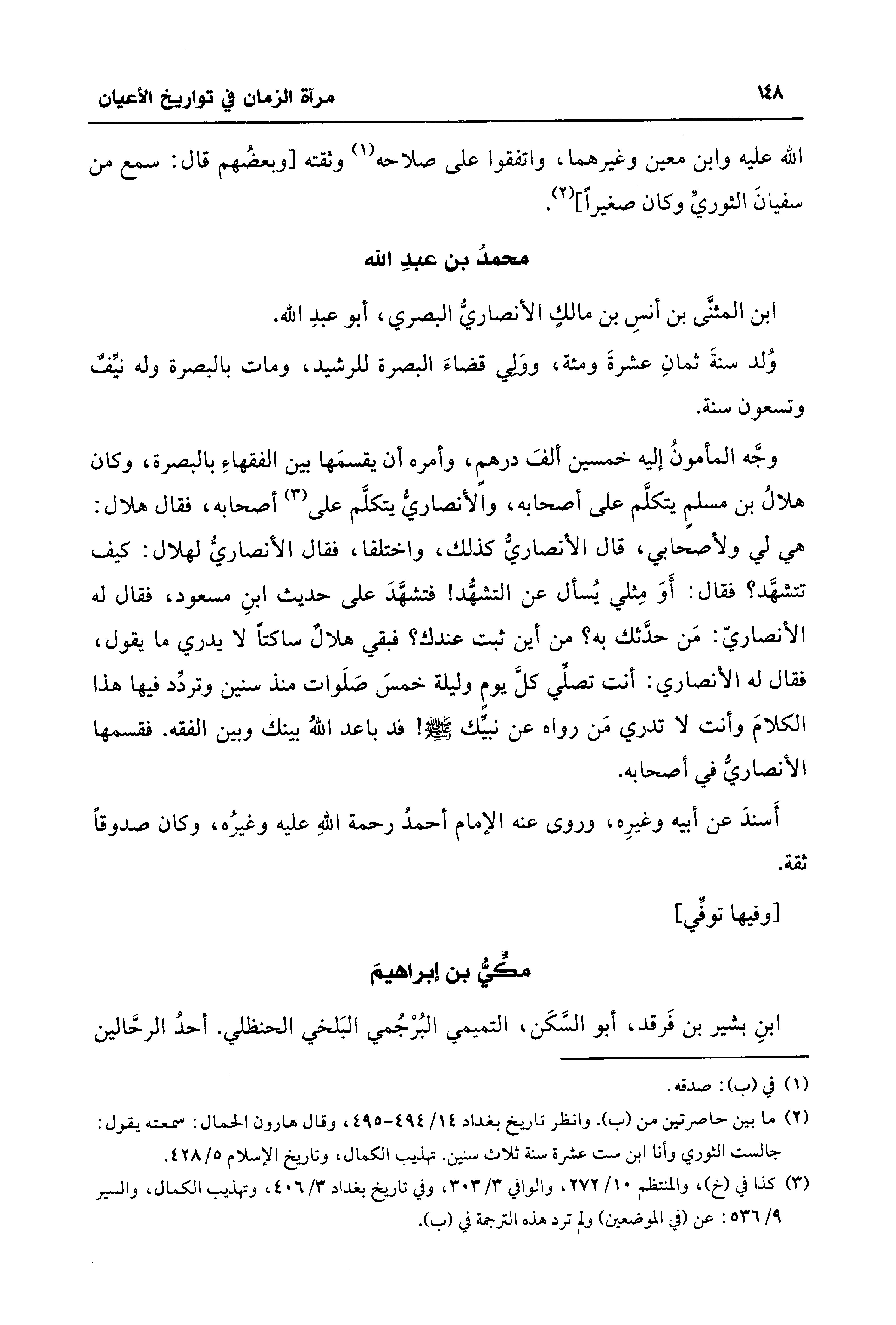 (¬3) كذا في (خ)، والمنتظم 10/ 272، والوافي 3/ 303، وفي تاريخ بغداد 3/ 406، وتهذيب الكمال، والسير 9/ 536: عن (في الموضعين) ولم ترد هذه الترجمة في (ب).