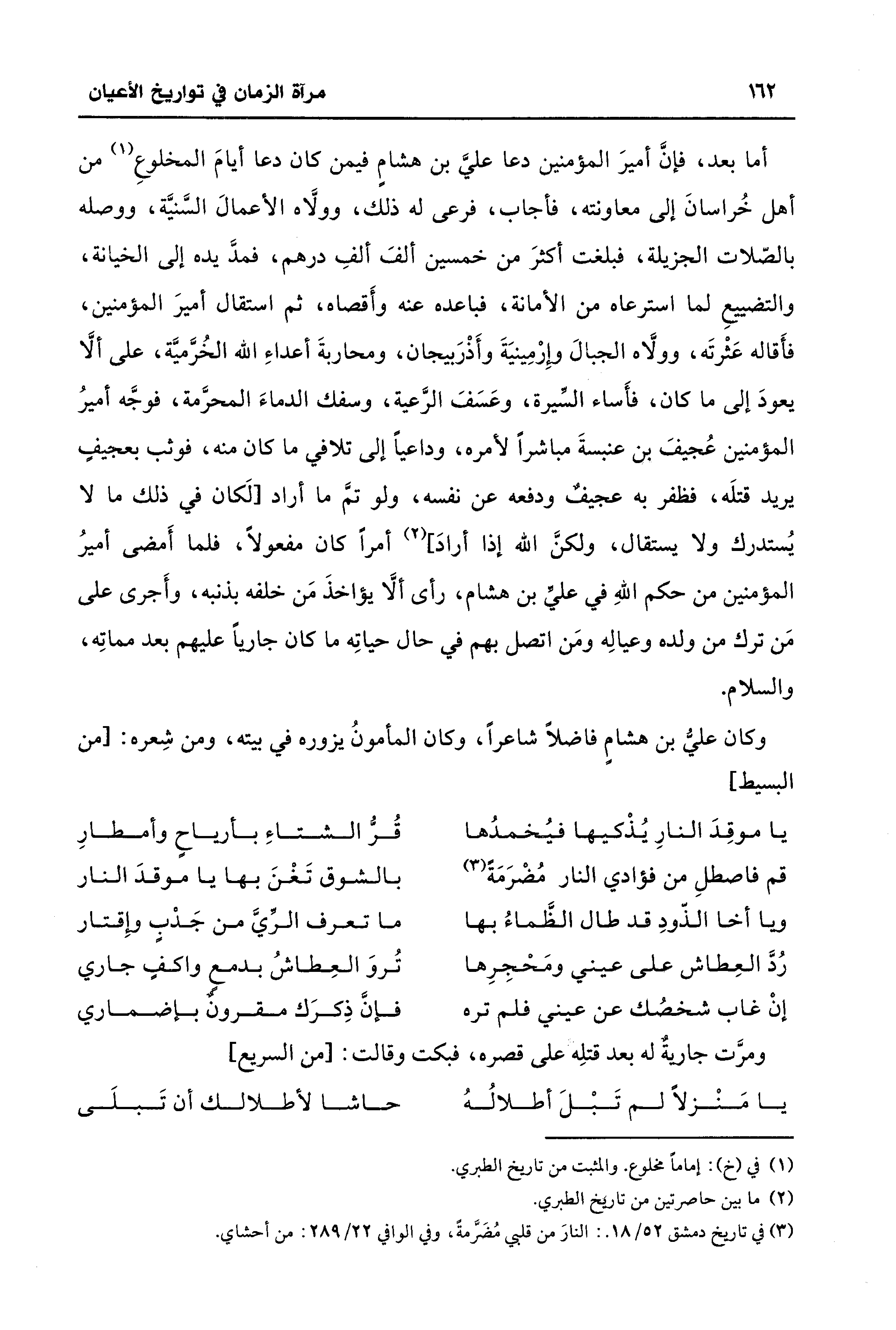 أما بعد، فإنَّ أميرَ المؤمنين دعا عليَّ بن هشامٍ فيمن كان دعا أيامَ المخلوعِ (¬1) من أهل خُراسانَ إلى معاونته، فأجاب، فرعى له ذلك، وولَّاه الأعمال السَّنيَّة، ووصله بالصّلات الجزيلة، فبلغت أكثرَ من خمسين ألفَ ألفِ درهم، فمدَّ يده إلى الخيانة، والتضييعِ لما استرعاه من الأمانة، فباعده عنه وأَقصاه، ثمَّ استقال أميرَ المؤمنين، فأَقاله عَثْرتَه، وولَّاه الجبال وإِرْمِينيَةَ وأَذْرَبيجان، ومحاربةَ أعداءِ الله الخُرَّميَّة، على ألا يعودَ إلى ما كان، فأَساء السِّيرة، وعَسَفَ الرَّعية، وسفك الدماءَ المحرَّمة، فوجَّه أميرُ المؤمنين عُجيفَ بن عنبسةَ مباشرًا لأمره، وداعيًا إلى تلافي ما كان منه، فوثب بعجيفٍ يريد قتلَه، فظفر به عجيفٌ ودفعه عن نفسه، ولو تمَّ ما أراد [لَكان في ذلك ما لا يُستدرك ولا يستقال، ولكنَّ الله إذا أرادَ] (¬2) أمرًا كان مفعولًا، فلما أَمضى أميرُ المؤمنين من حكم اللهِ في عليِّ بن هشام، رأى ألا يؤاخذَ مَن خلفه بذنبه، وأَجرى على مَن ترك من ولده وعيالِه ومَن اتصل بهم في حال حياتِه ما كان جاريًا عليهم بعد مماتِه، والسلام.
