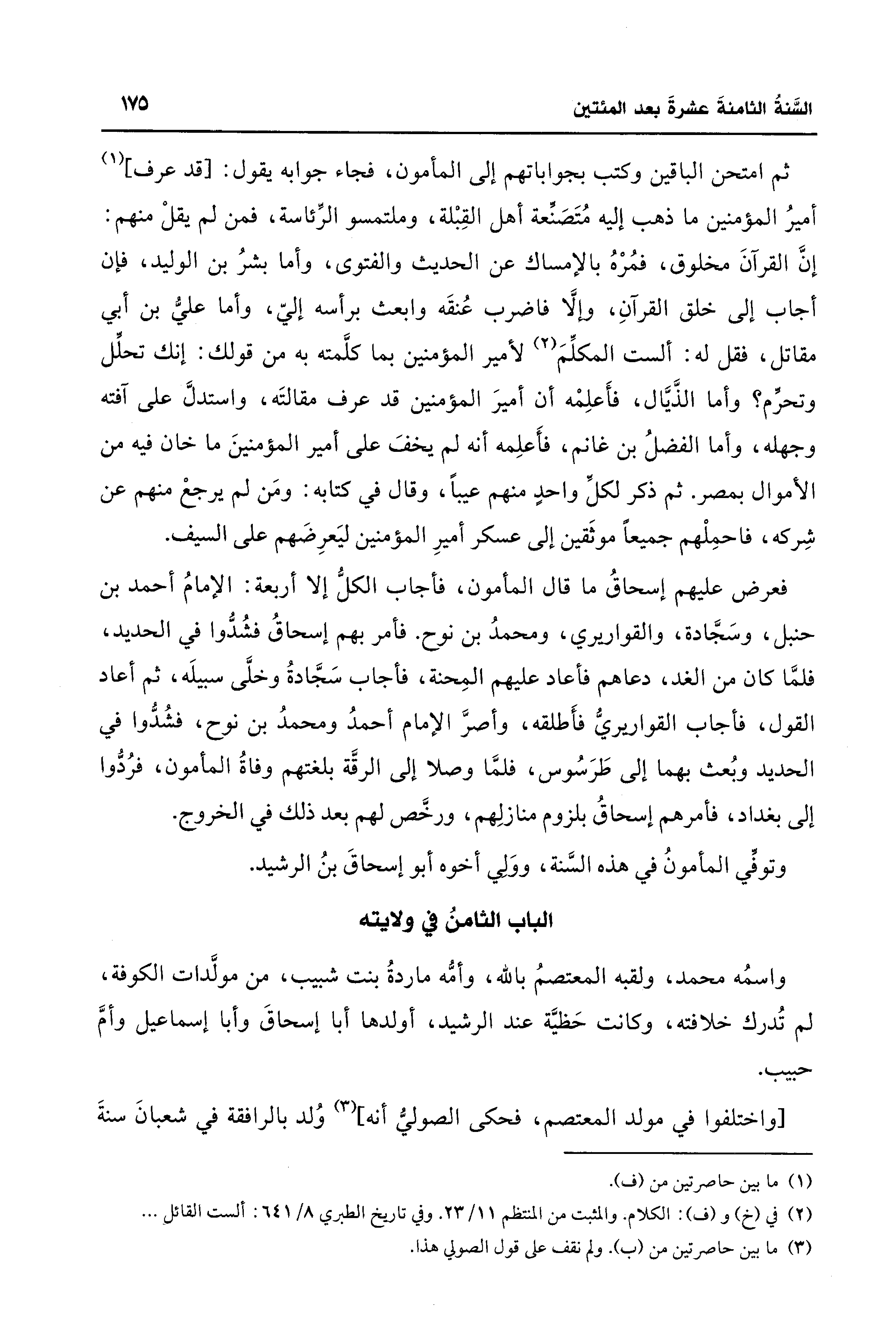 [واختلفوا في مولد المعتصم، فحكى الصوليُّ أنَّه] (¬3) وُلد بالرافقة في شعبانَ سنةَ