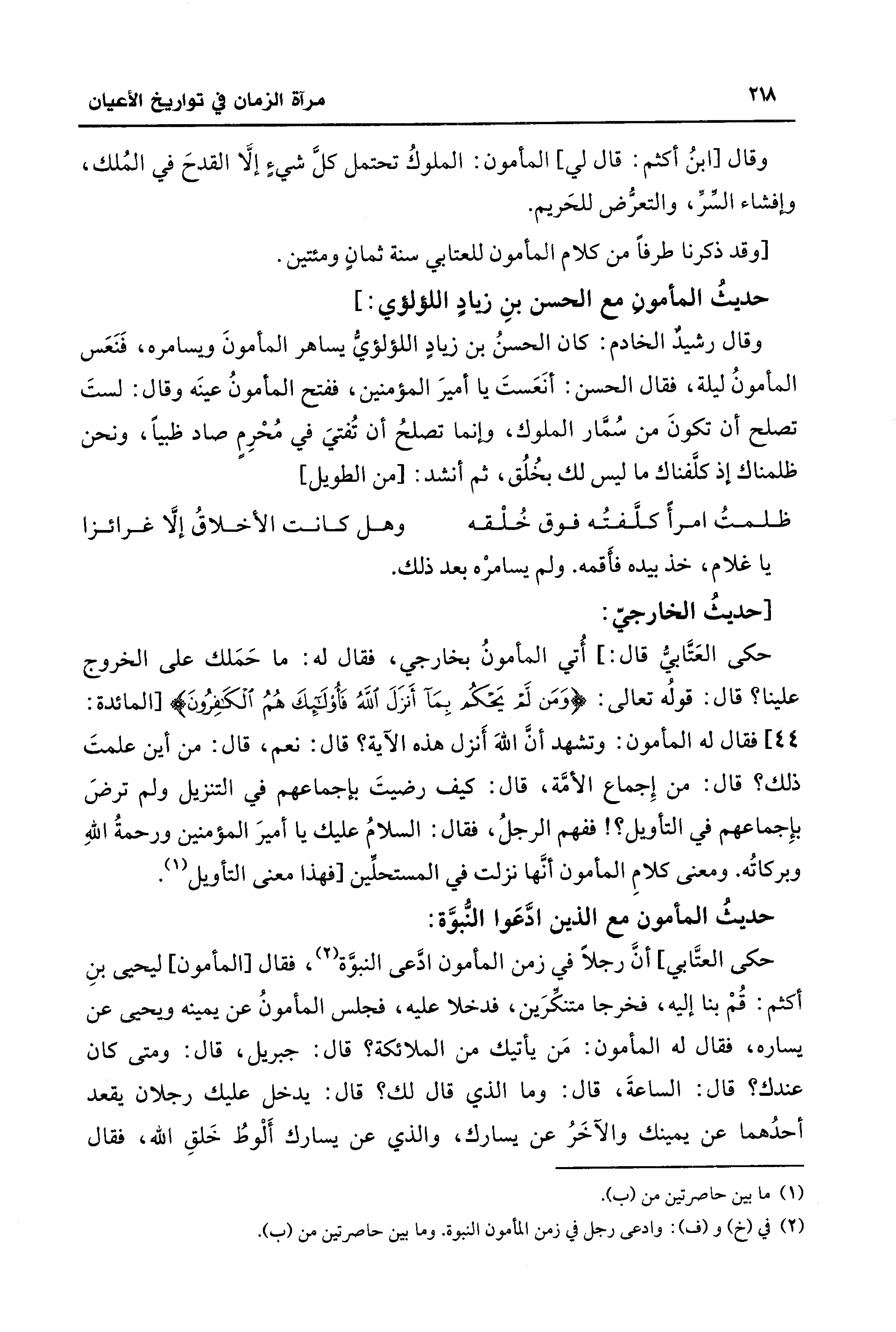 [وقد ذكرنا طرفًا من كلام المأمون للعتابي سنة ثمانٍ ومئتين.