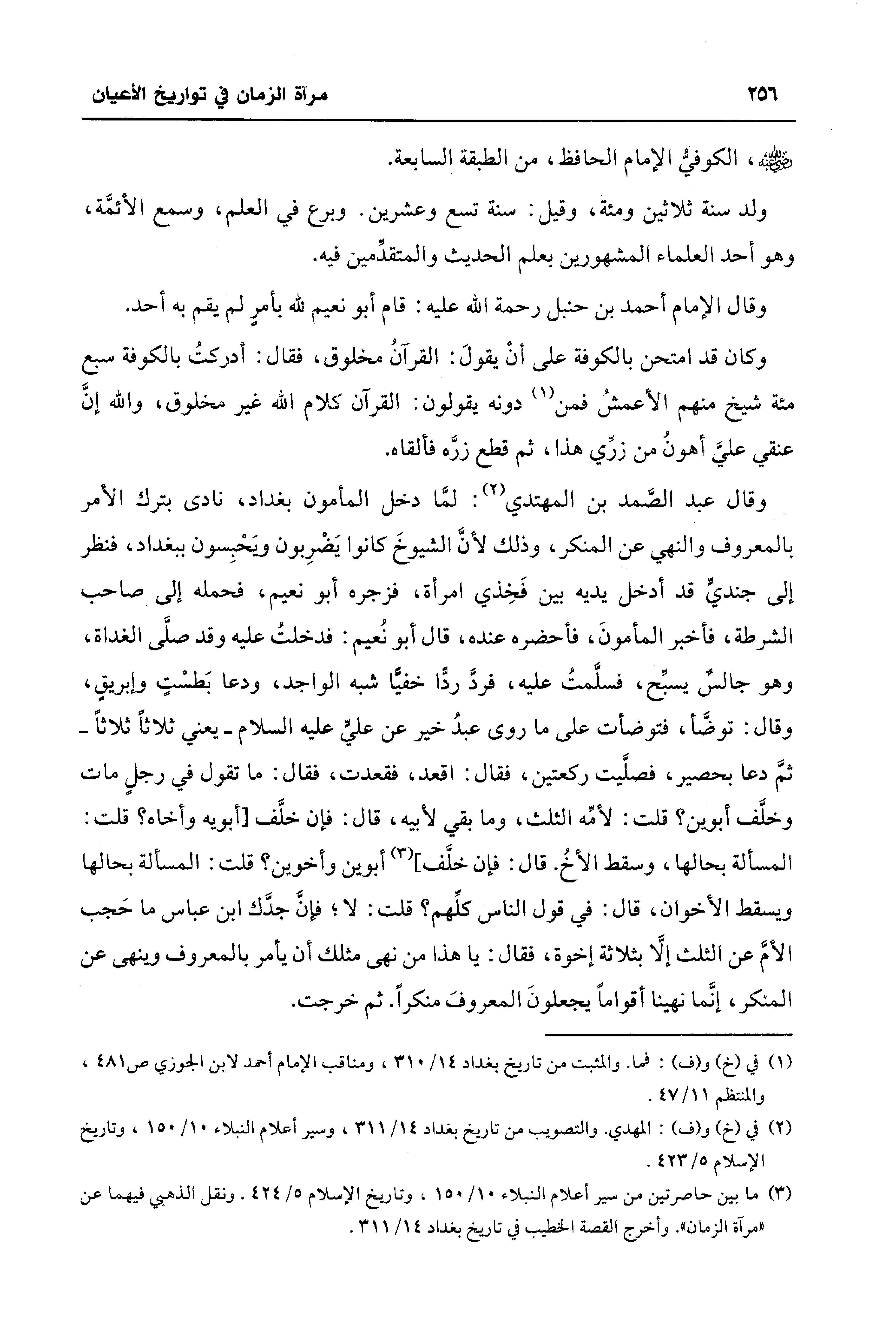 (¬3) ما بين حاصرتين من سير أعلام النبلاء 10/ 150، وتاريخ الإسلام 5/ 424. ونقل الذهبي فيهما عن "مرآة الزمان". وأخرج القصة الخطيب في تاريخ بغداد 14/ 311.