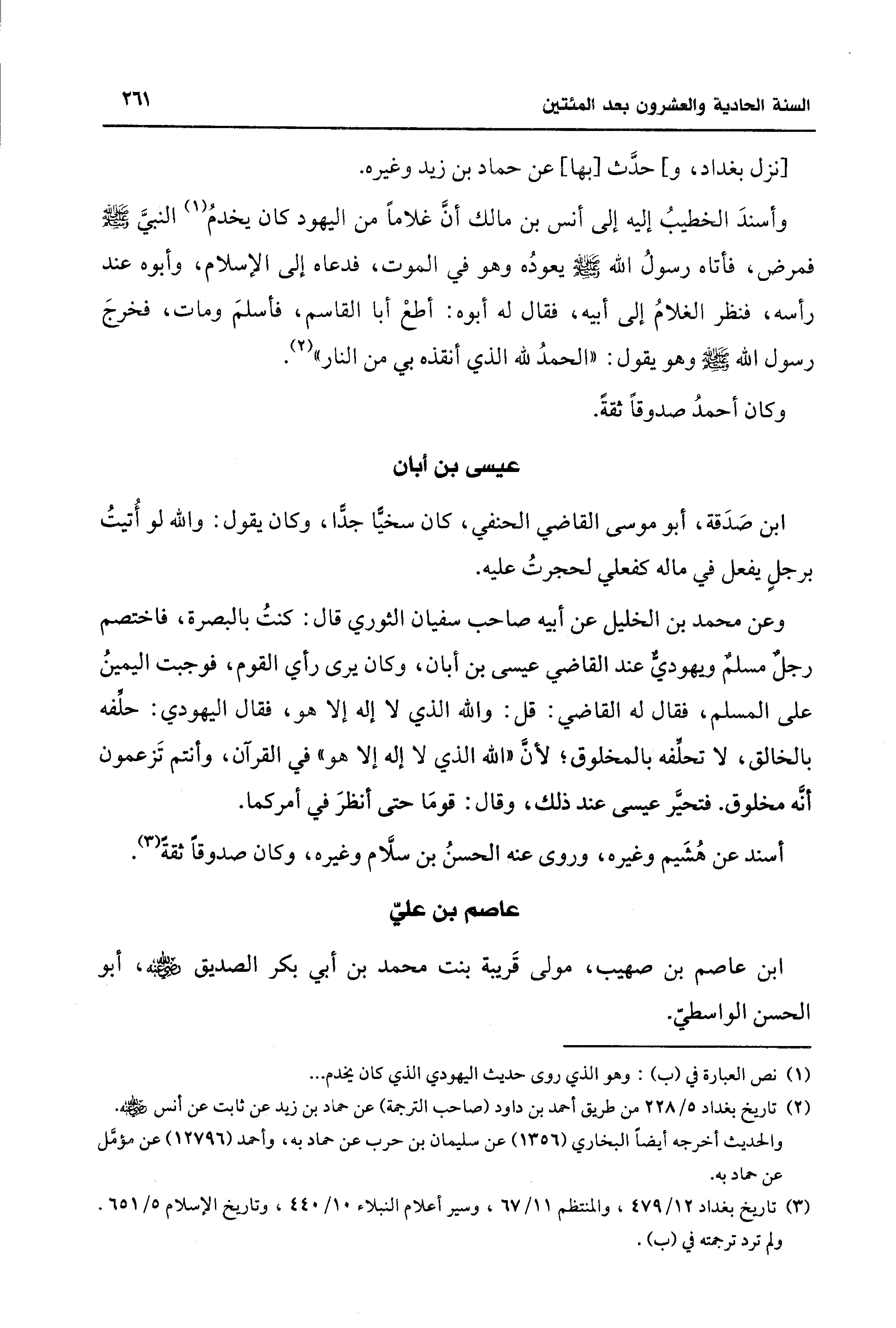 (¬3) تاريخ بغداد 12/ 479، والمنتظم 11/ 67، وسير أعلام النبلاء 10/ 440، وتاريخ الإسلام 5/ 651. ولم ترد ترجمته في (ب).