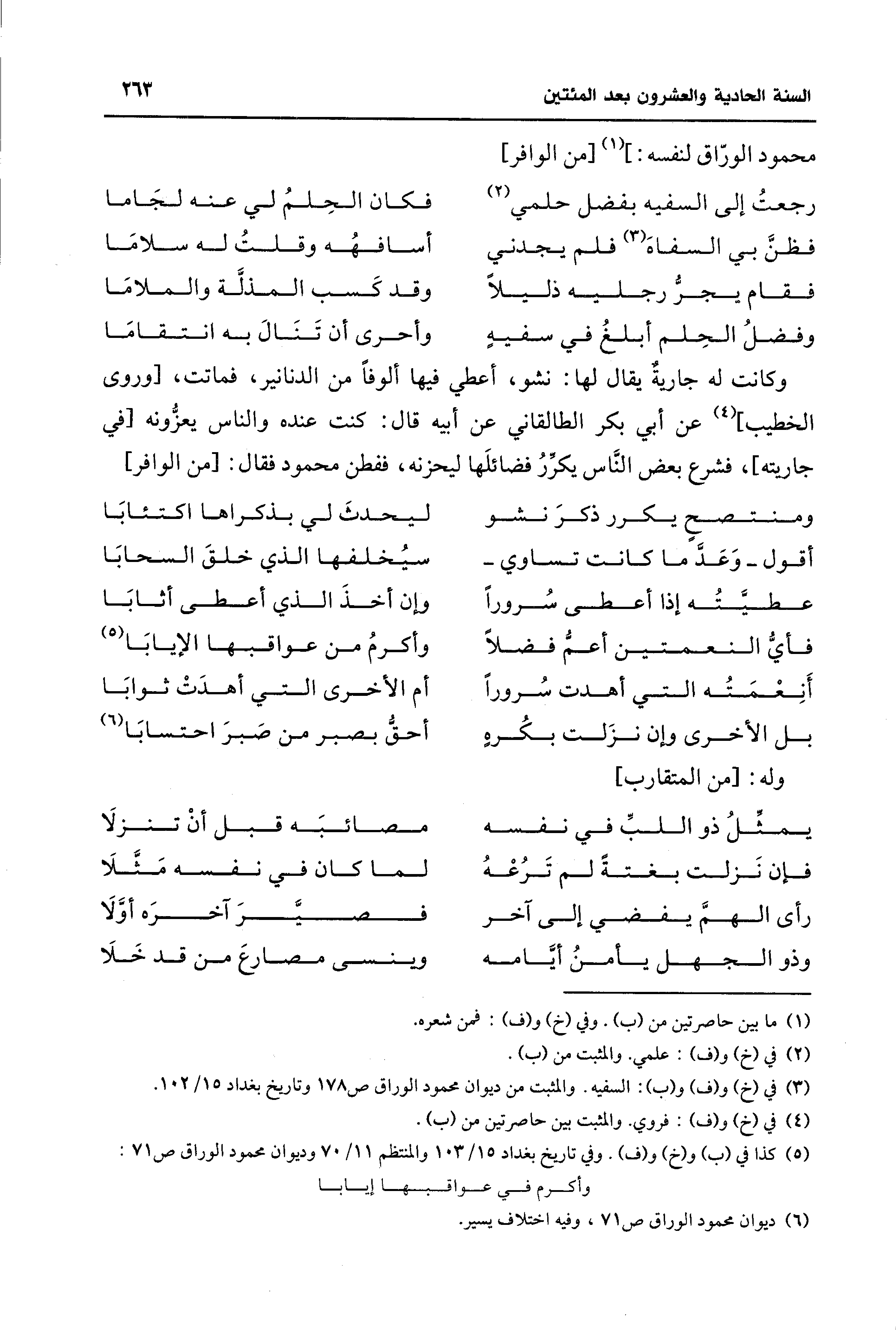 (¬6) ديوان محمود الوراق ص 71، وفيه اختلاف يسير.