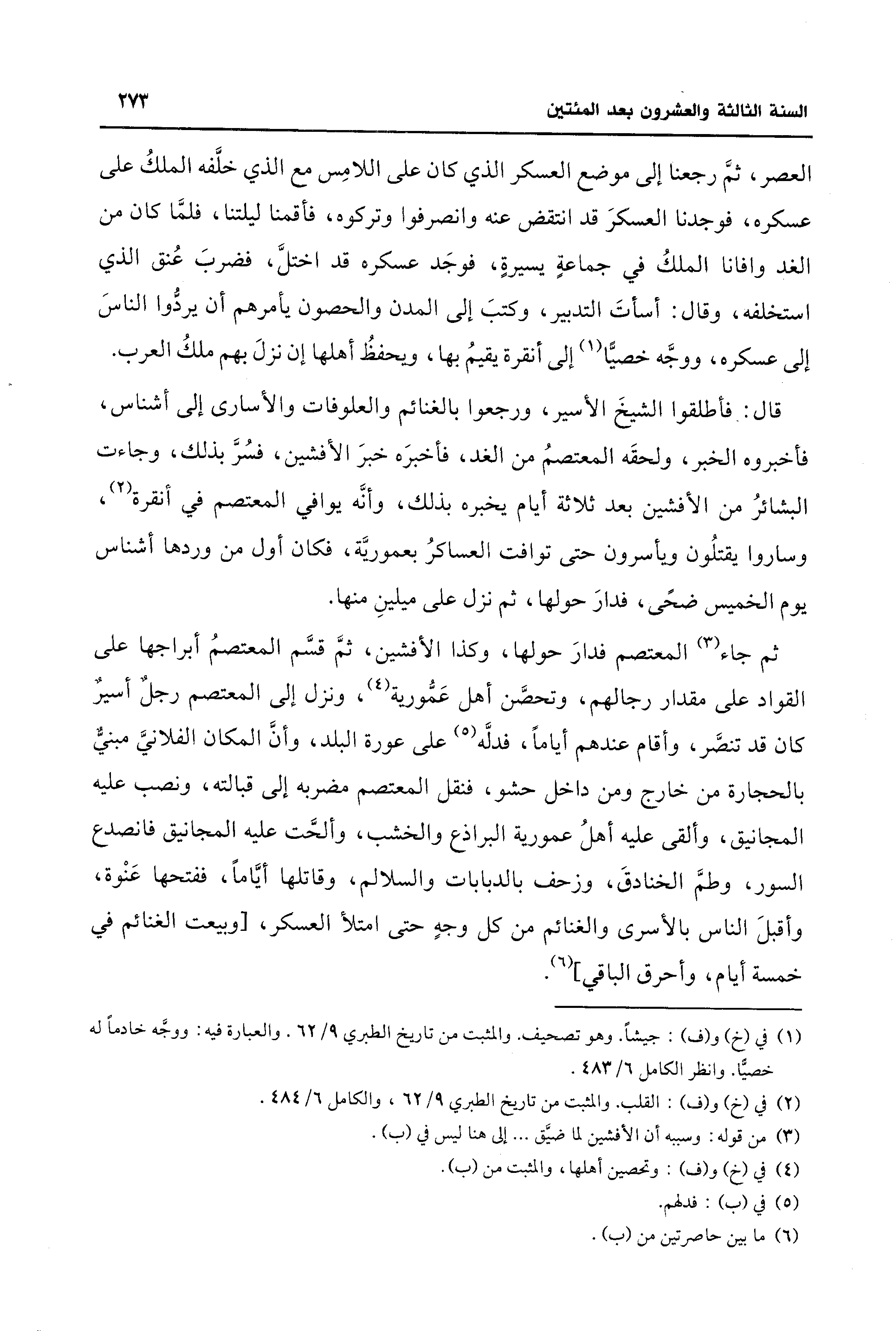 قال: فأطلقوا الشيخَ الأسير، ورجعوا بالغنائم والعلوفات والأسارى إلى أشناس، فأخبروه الخبر، ولحقَه المعتصمُ من الغد، فأخبرَه خبرَ الأفشين، فسُرَّ بذلك، وجاءت البشائرُ من الأفشين بعد ثلاثة أيام يخبره بذلك، وأنَّه يوافي المعتصم في أنقرة (¬2)،
