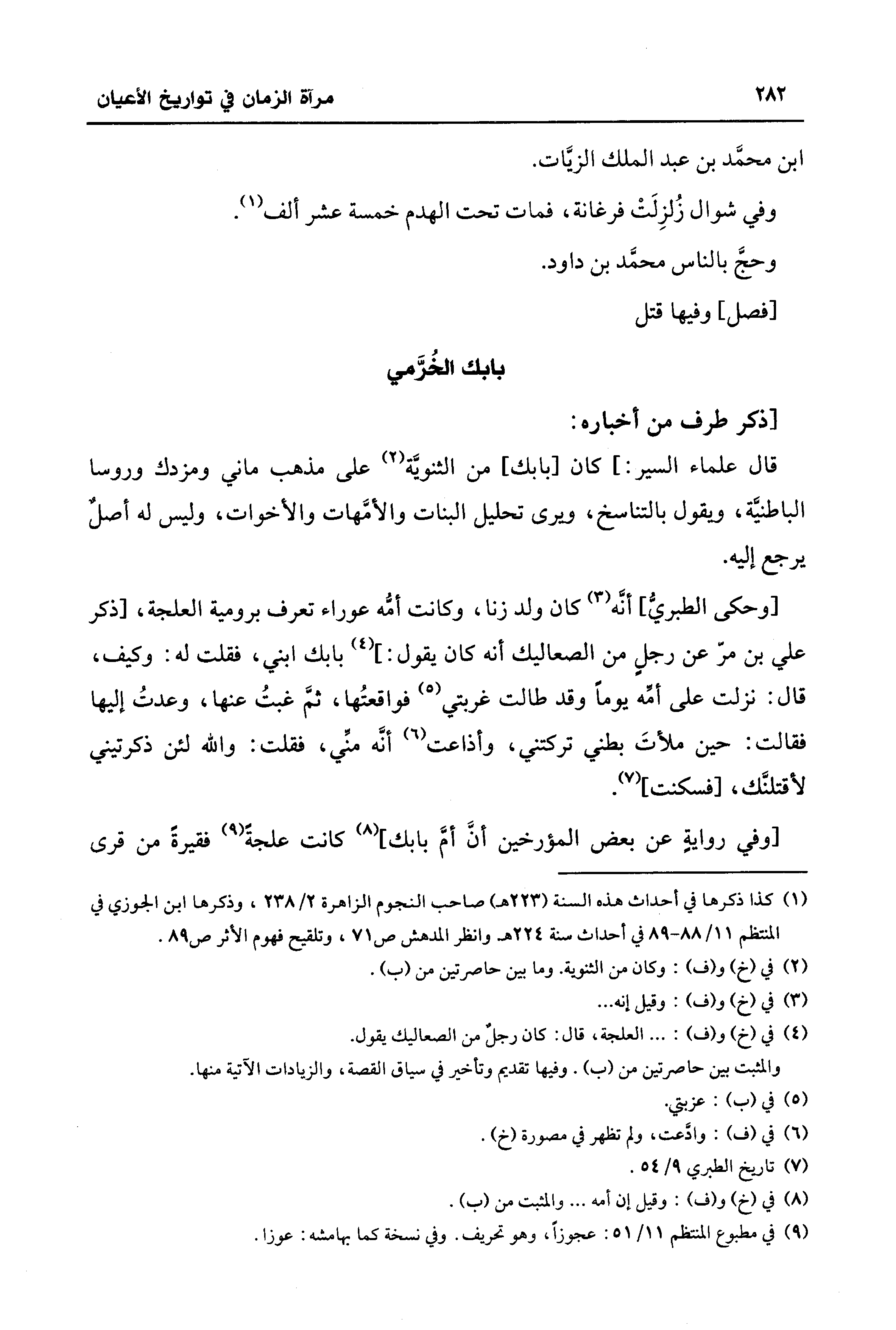 (¬1) كذا ذكرها في أحداث هذه السنة (223 هـ) صاحب النجوم الزاهرة 2/ 238، وذكرها ابن الجوزي في المنتظم 11/ 88 - 89 في أحداث سنة 224 هـ وانظر المدهش ص 71، وتلقيح فهوم الأثر ص 89.