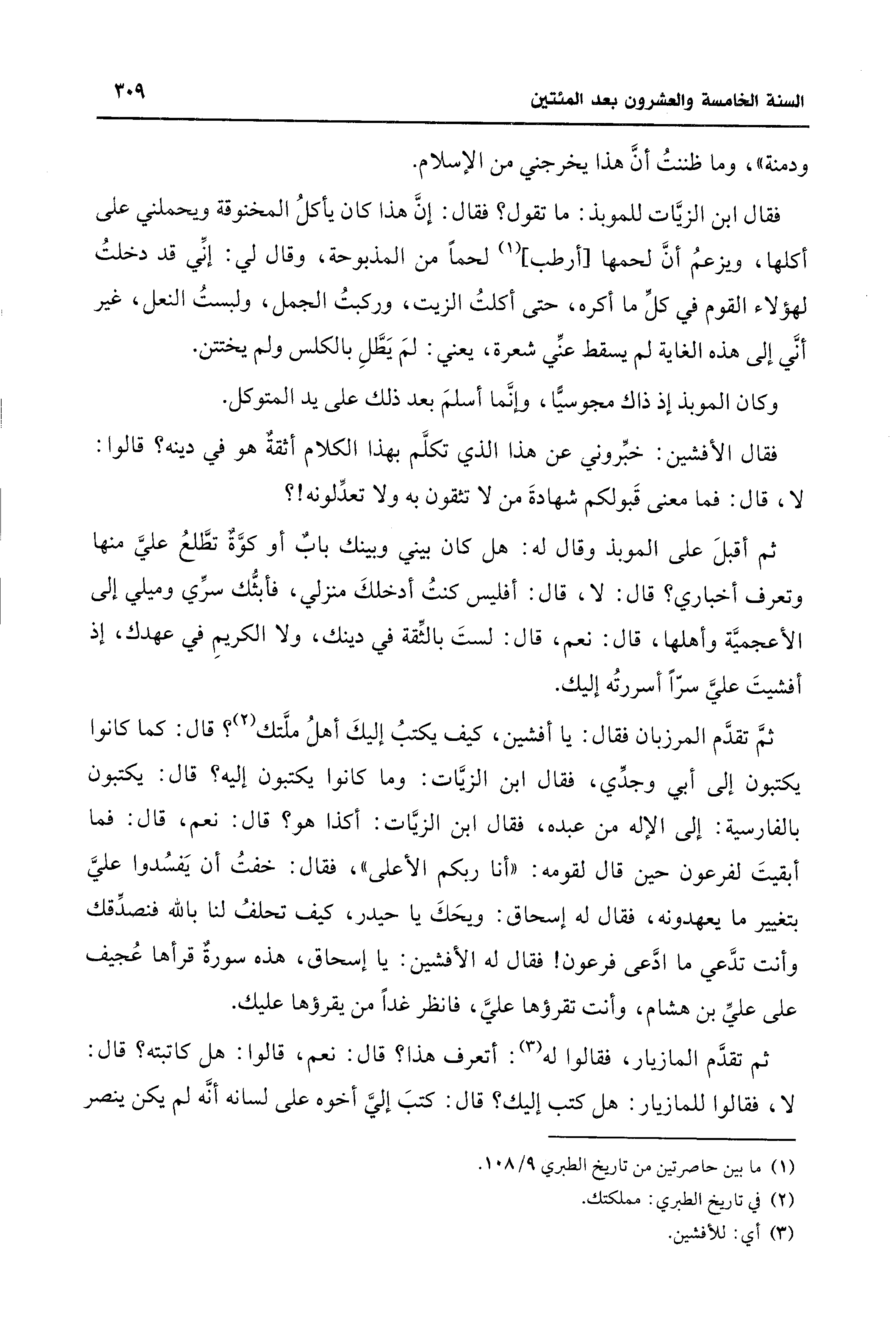 (¬1) ما بين حاصرتين من تاريخ الطبري 9/ 108.