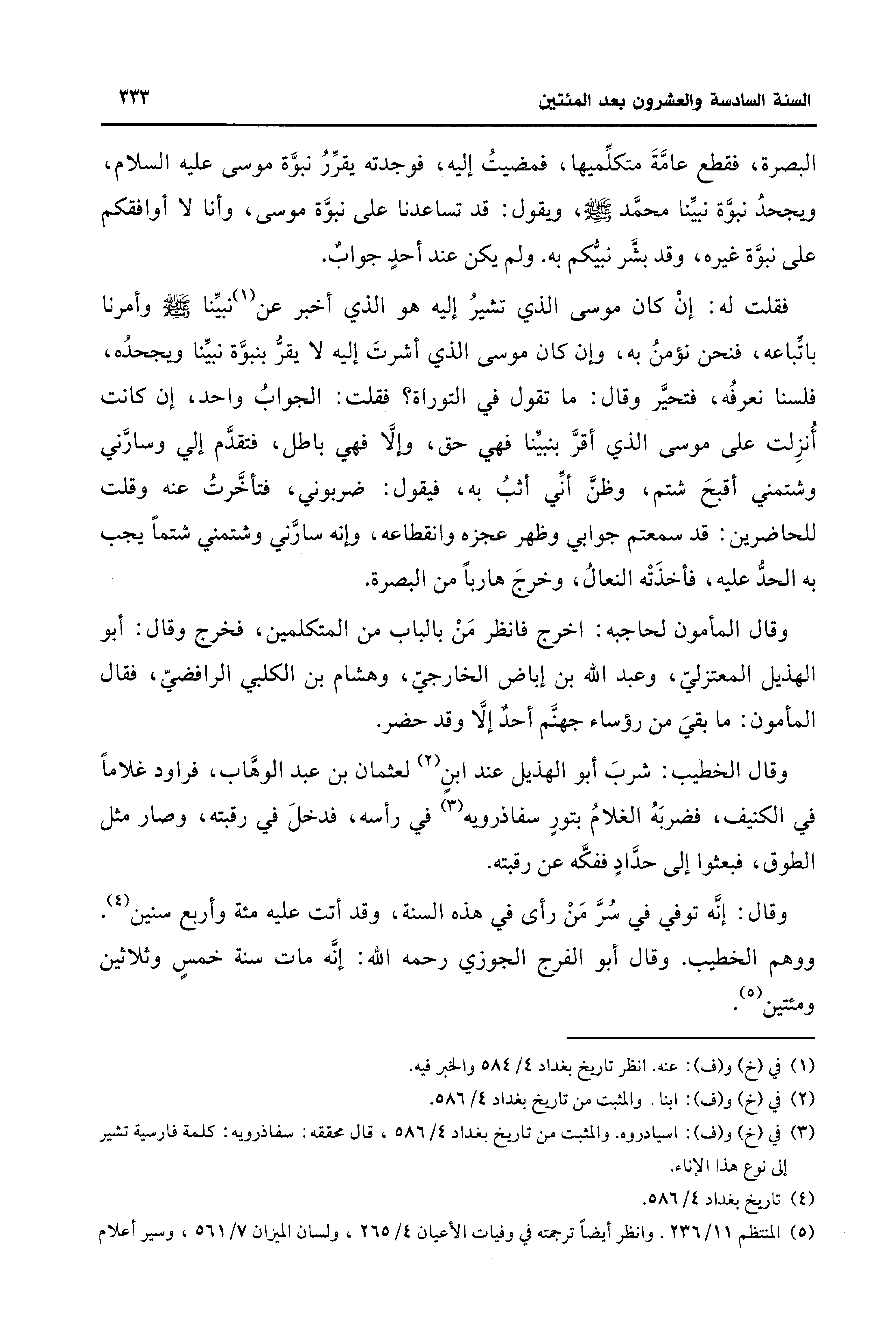 (¬5) المنتظم 11/ 236. وانظر أَيضًا ترجمته في وفيات الأعيان 4/ 265، ولسان الميزان 7/ 561، وسير أعلام =
