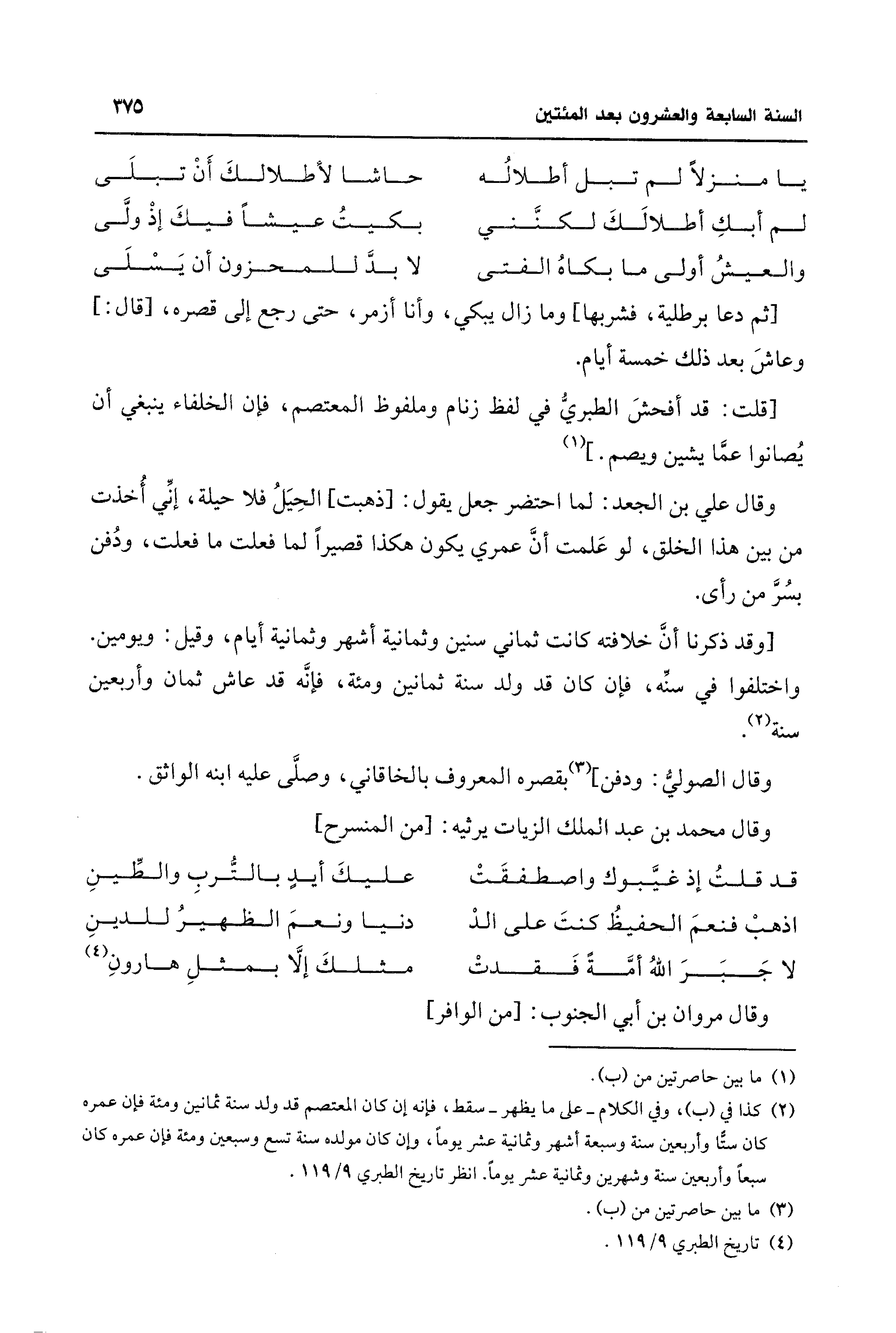 [قلت: قد أفحشَ الطبريُّ في لفظ زنام وملفوظ المعتصم، فإن الخلافاء ينبغي أن يُصانوا عمَّا يشين ويصم.] (¬1)