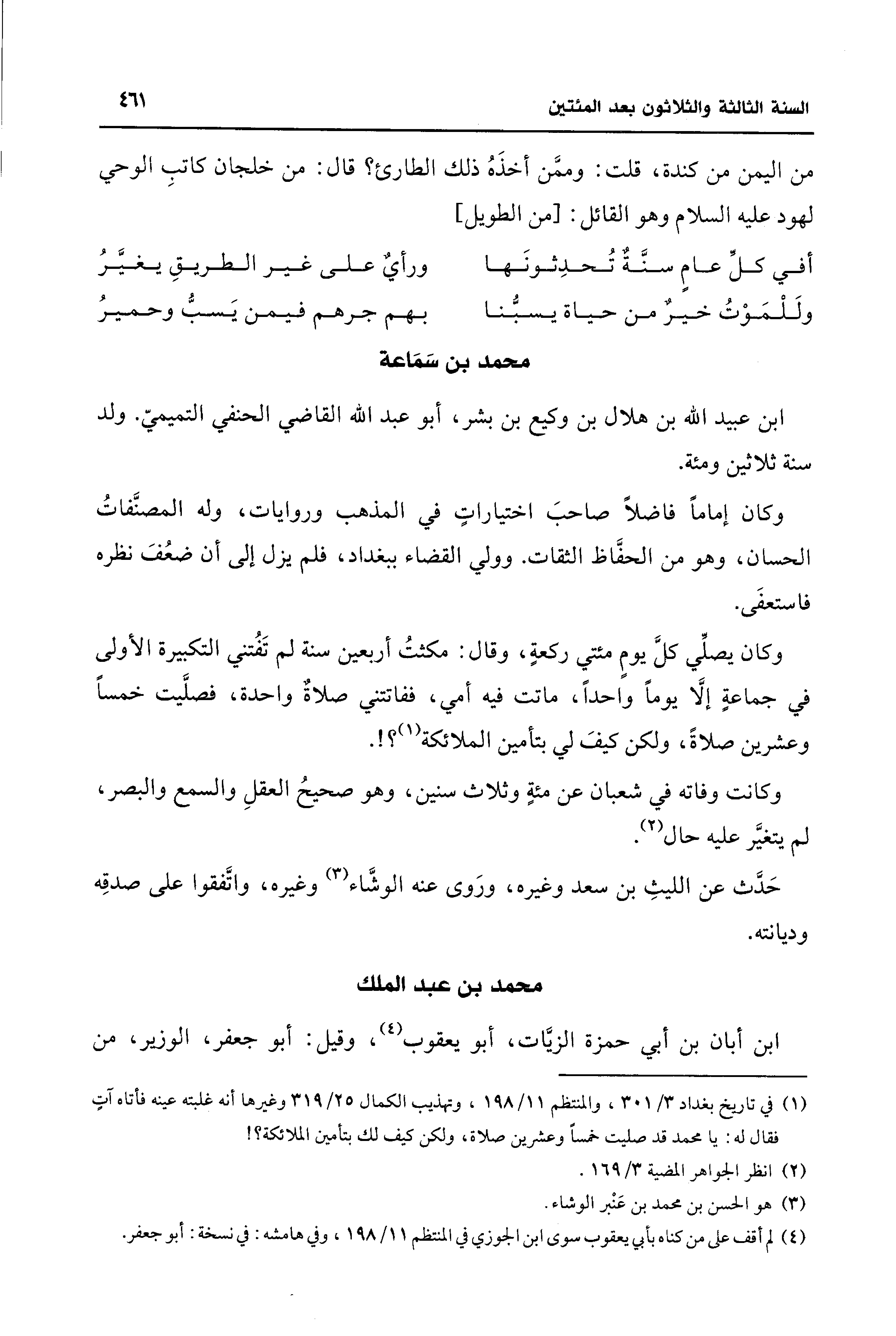 (¬1) في تاريخ بغداد 3/ 301، والمنتظم 11/ 198، وتهذيب الكمال 25/ 319 وغيرها أنه غلبته عينه فأتاه آتٍ فقال له: يا محمد قد صليت خمسًا وعشرين صلاة، ولكن كيف لك بتأمين الملائكة؟ !