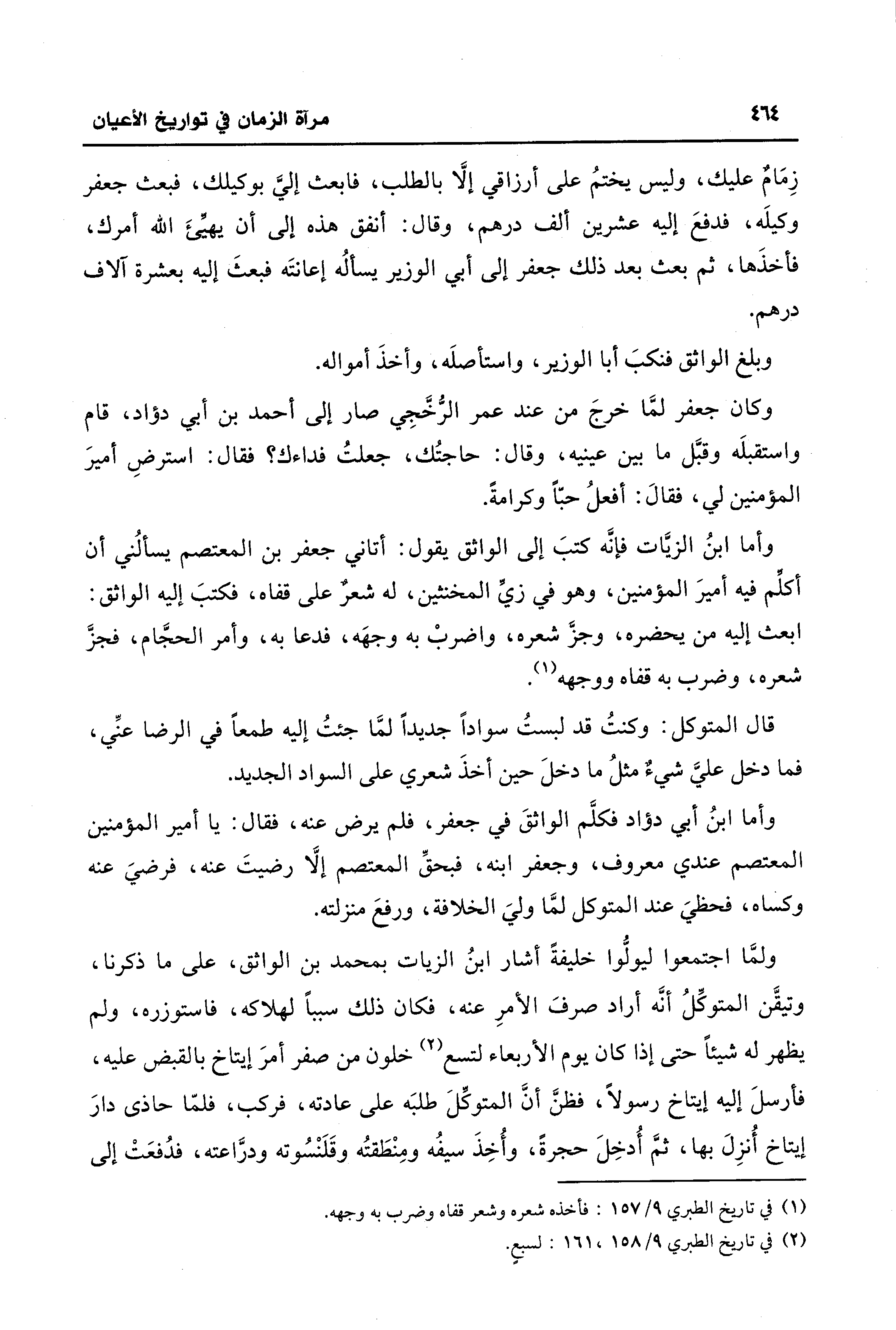 قال المتوكل: وكنتُ قد لبستُ سوادًا جديدًا لمَّا جئتُ إليه طمعًا في الرضا عنِّي، فما دخل علي شيءٌ مثلُ ما دخلَ حين أخذَ شعري على السواد الجديد.