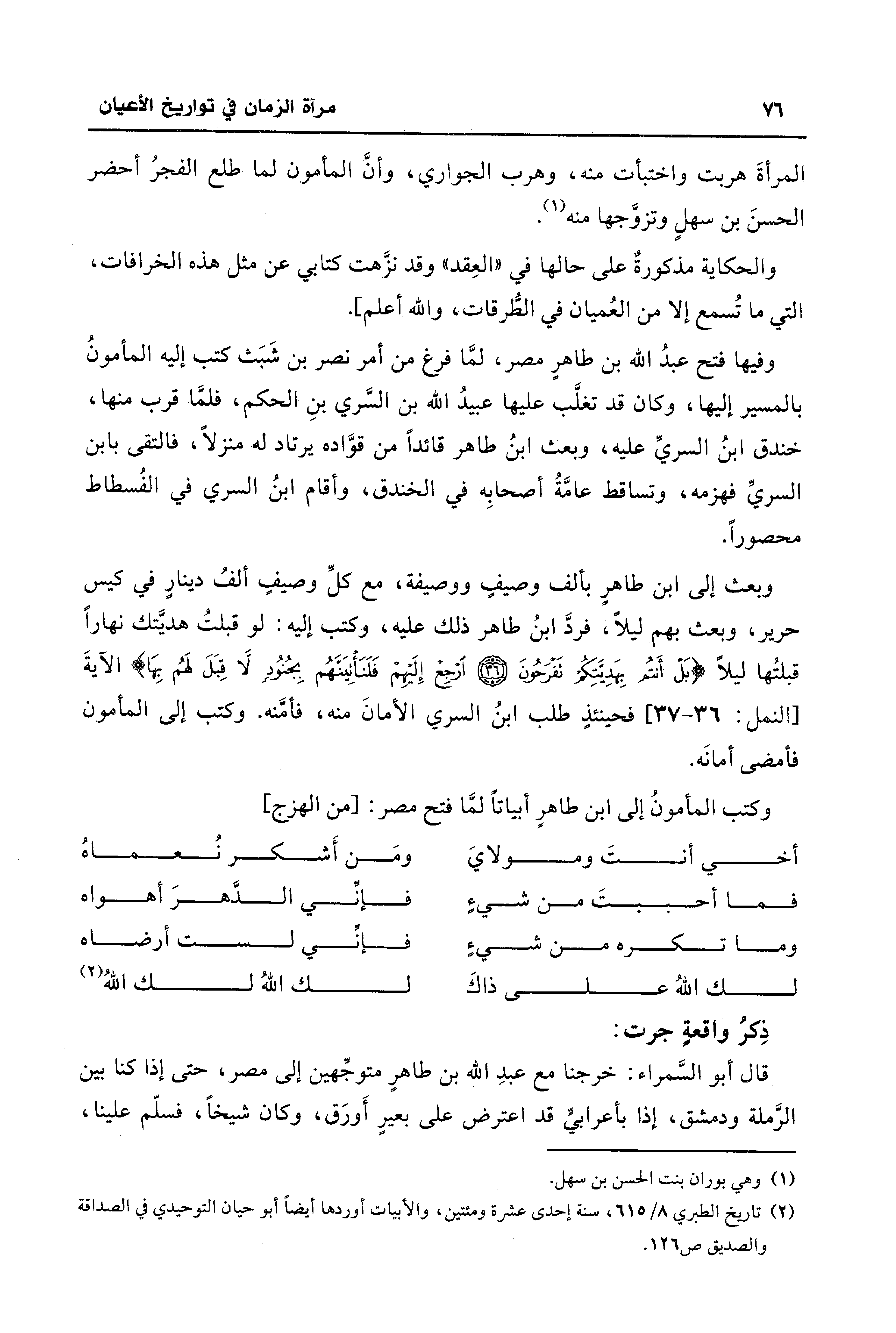 (¬2) تاريخ الطبري 8/ 615، سنة إحدى عشرة ومئتين، والأبيات أوردها أَيضًا أبو حيان التوحيدي في الصداقة والصديق ص 126.
