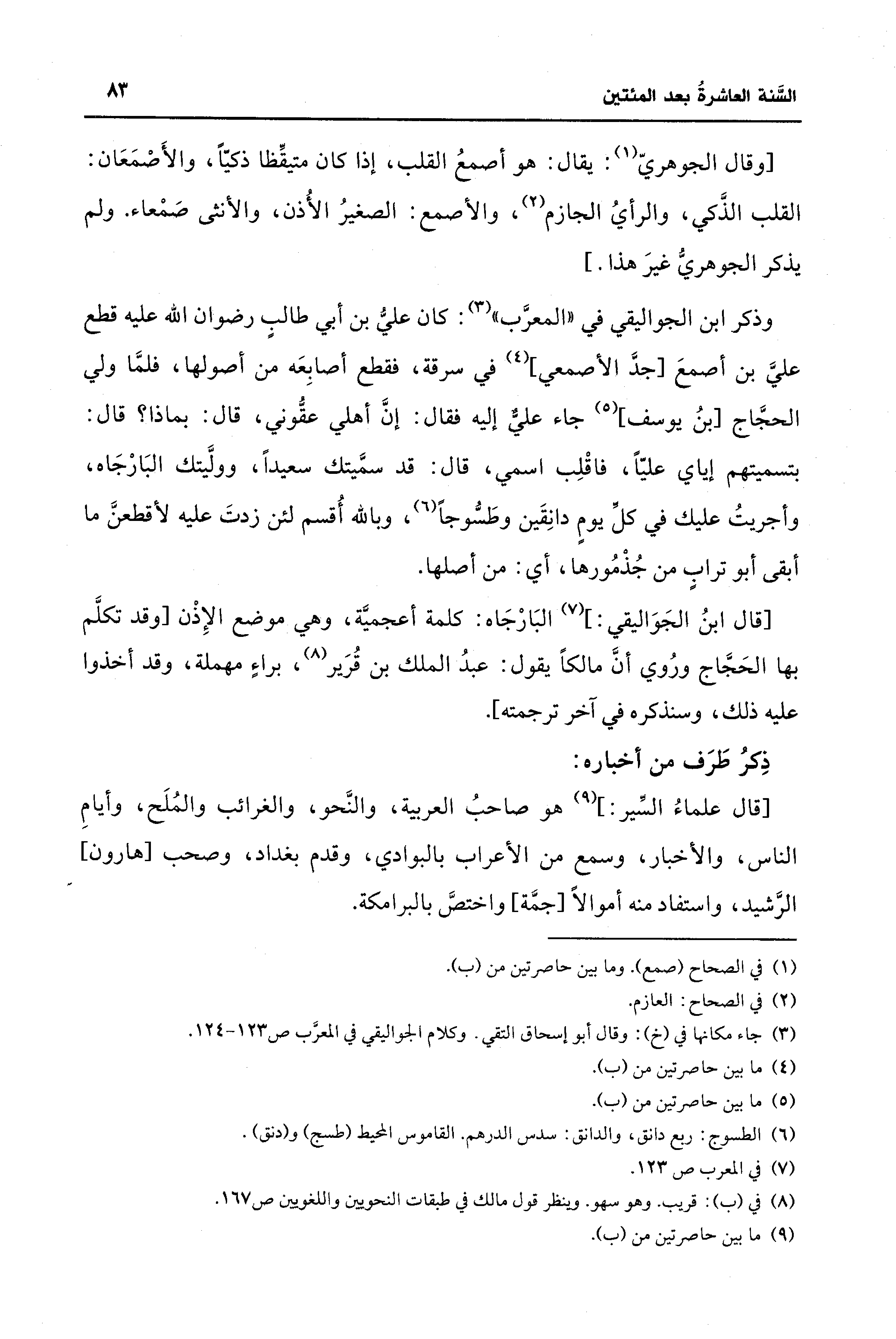[قال علماءُ السِّير: ] (¬9) هو صاحبُ العربية، والنَّحو، والغرائب والمُلَح، وأيامِ النَّاس، والأخبار، وسمع من الأعراب بالبوادي، وقدم بغداد، وصحب [هارون] الرَّشيد، واستفاد منه أموالًا [جمَّة] واختصَّ بالبرامكة.