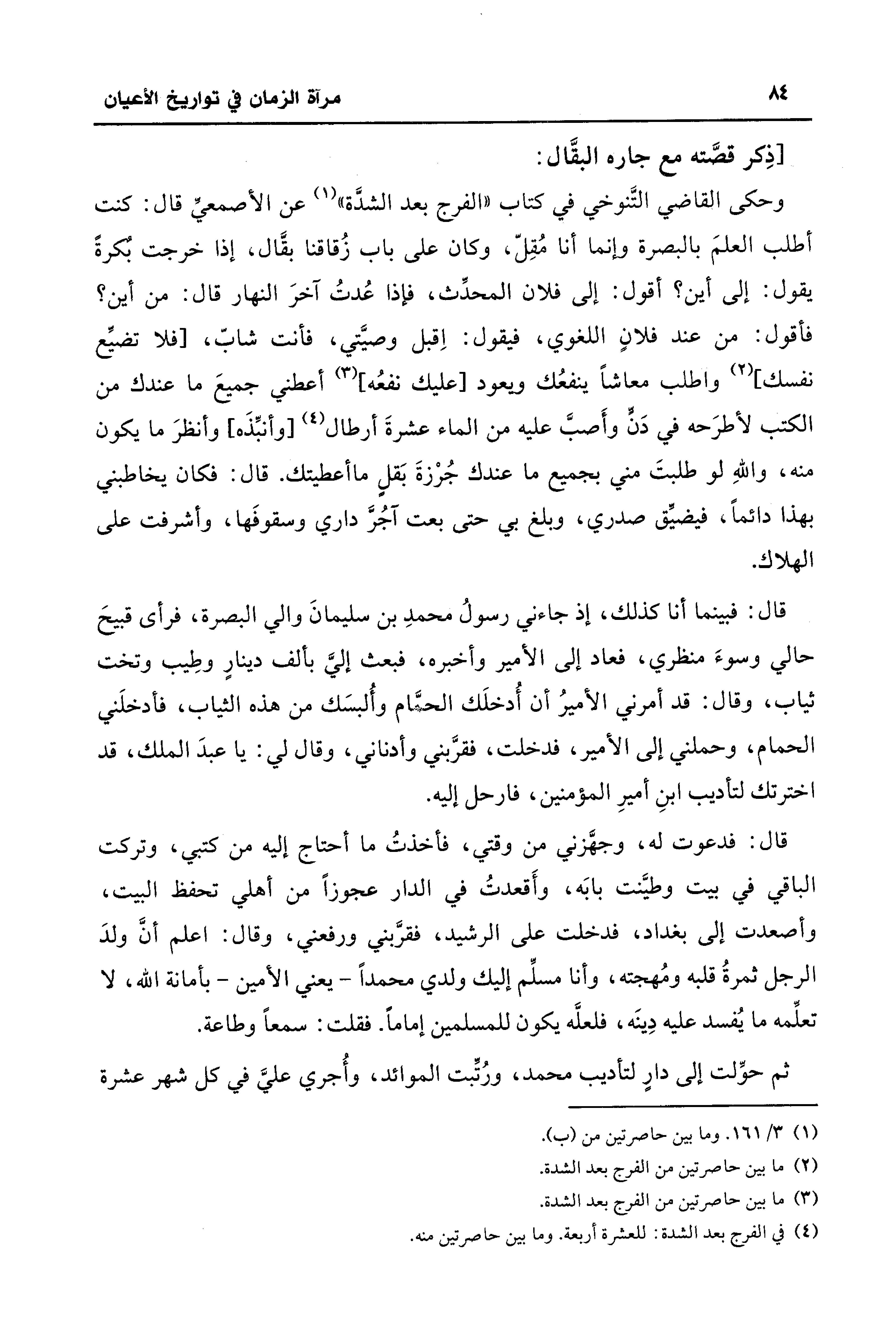 (¬4) في الفرج بعد الشدة: للعشرة أربعة. وما بين حاصرتين منه.