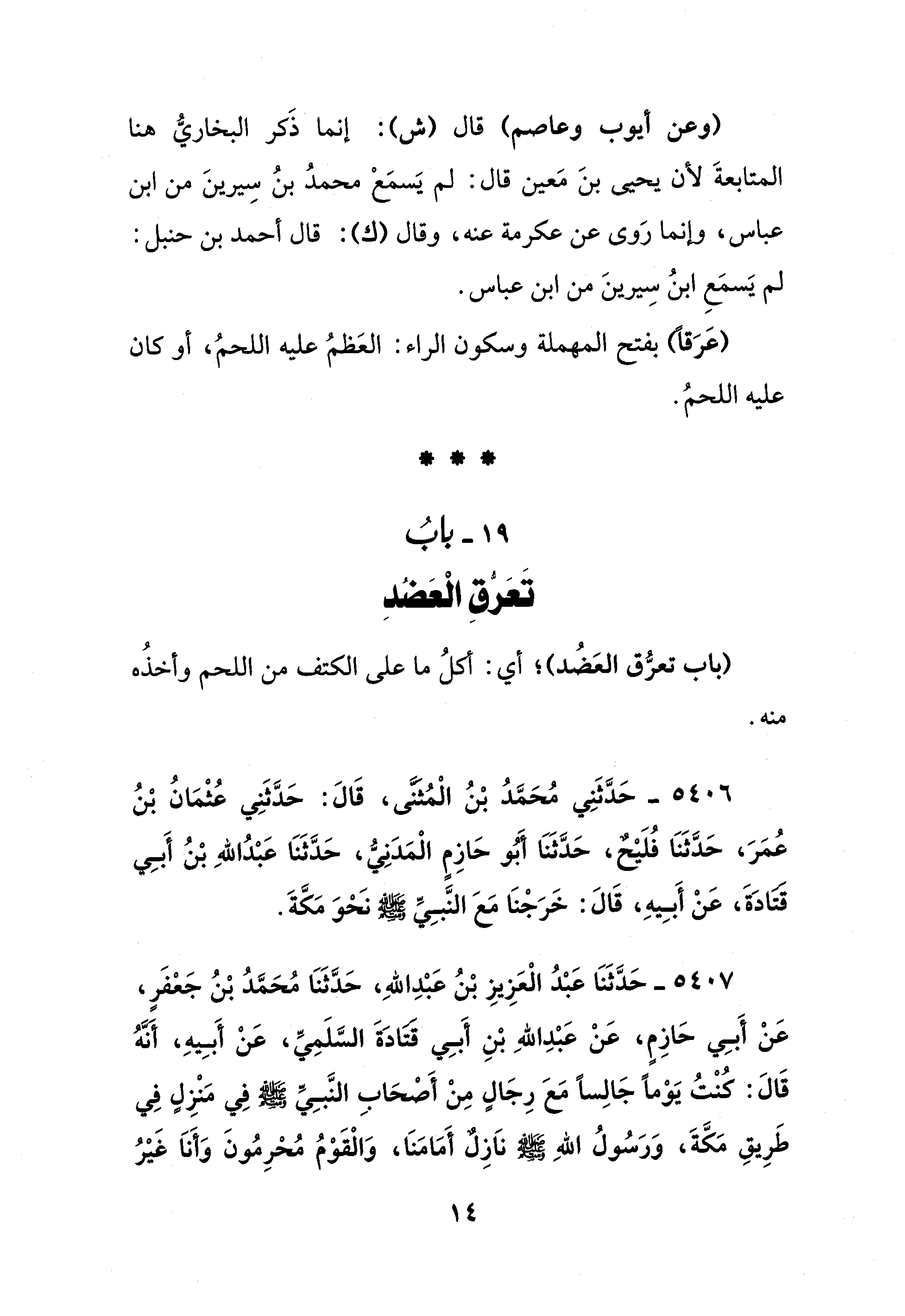 19 - بابُ تَعَرُّقِ الْعَضُدِ