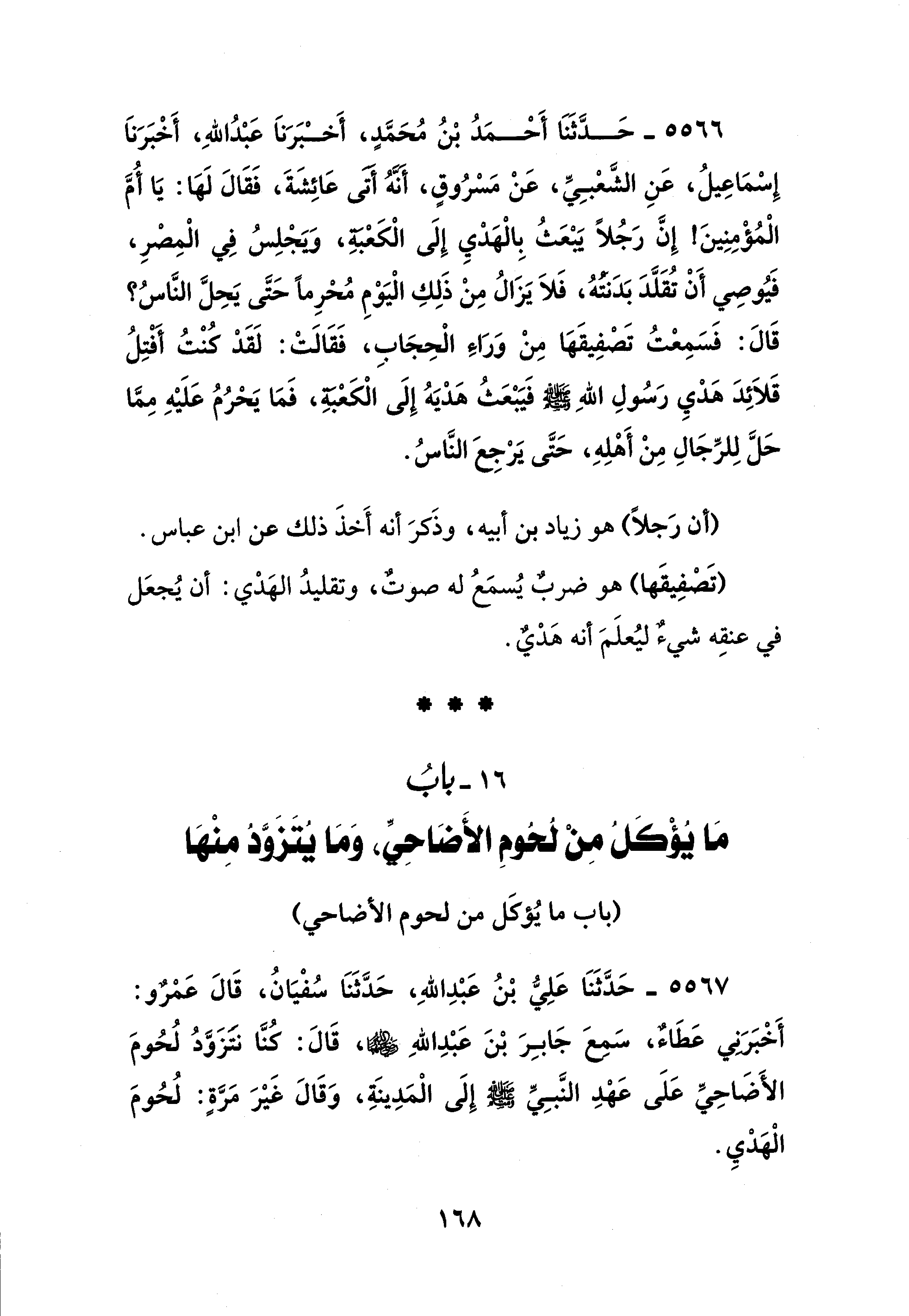 16 - بابُ مَا يُؤْكَلُ مِنْ لُحُومِ الأضَاحِيِّ، وَمَا يُتَزَوَّدُ مِنْهَا