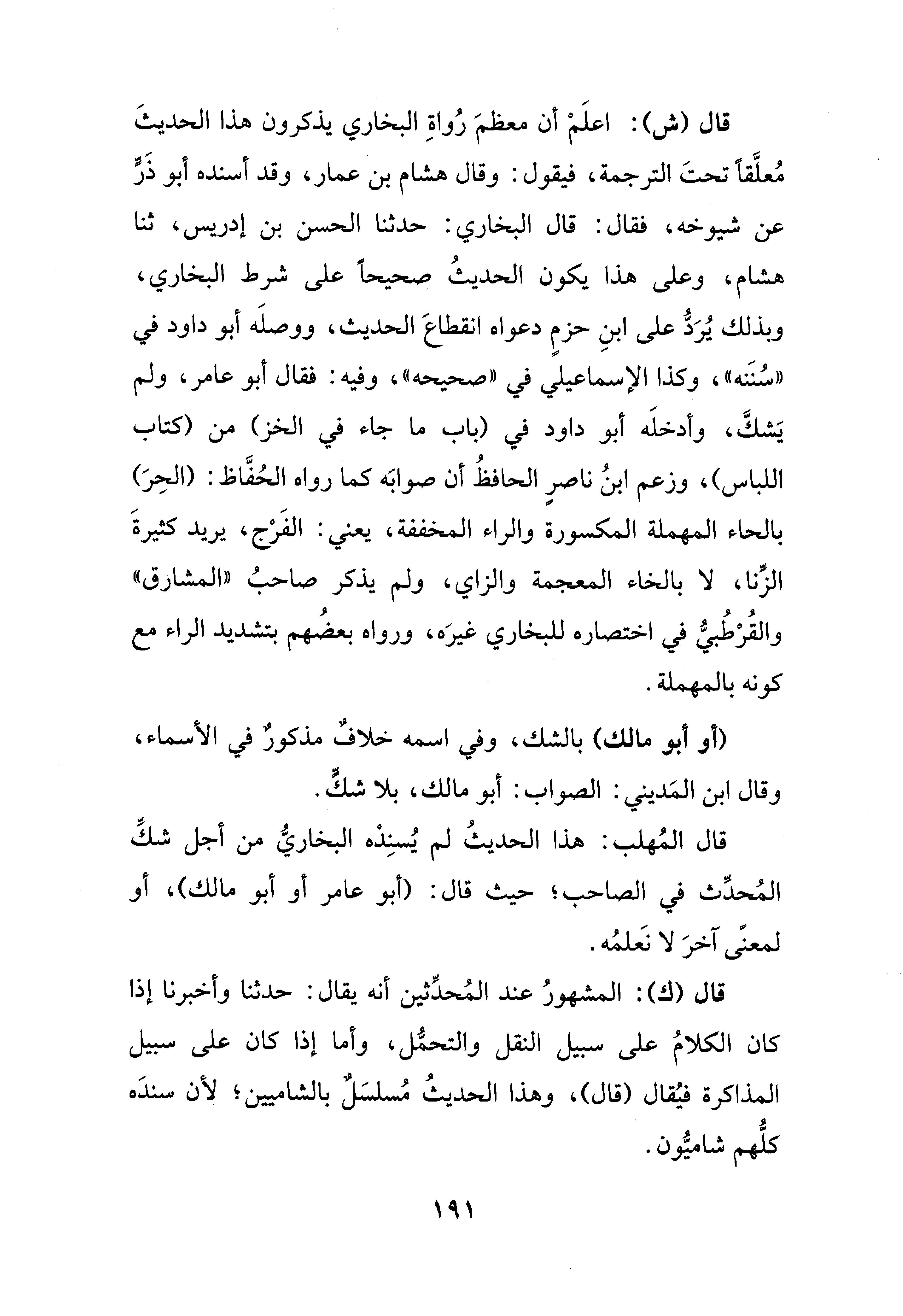 قال المُهلب: هذا الحديثُ لم يُسنِدْه البخاريُّ من أجل شكِّ المُحدِّث في الصاحب؛ حيث قال: (أبو عامر أو أبو مالك)، أو لمعنًى آخرَ لا نَعلمُه.