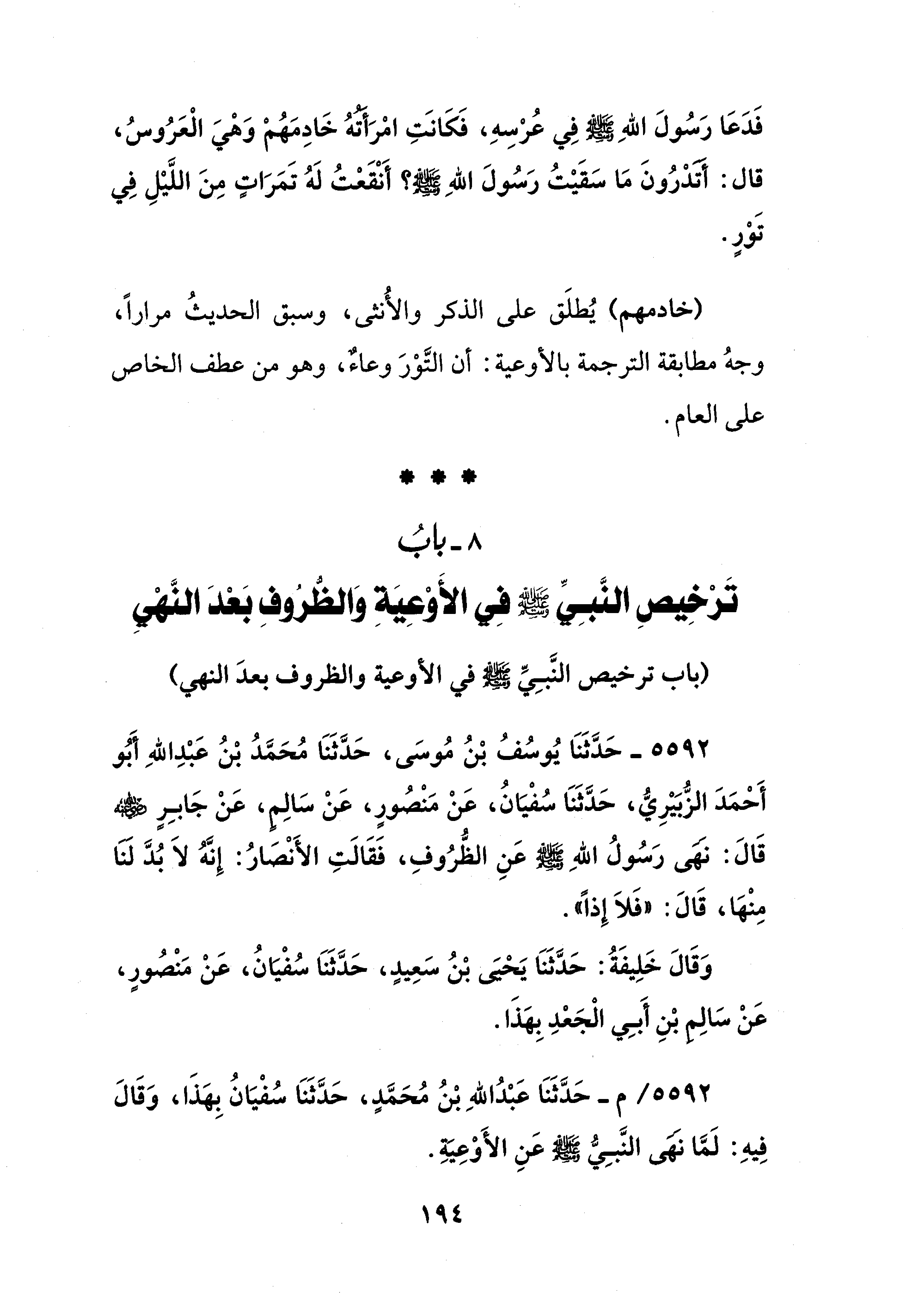 8 - بابُ تَرْخِيصِ النَّبِيِّ - صلى الله عليه وسلم - فِي الأَوْعِيَةِ وَالظُّرُوفِ بَعْدَ النَّهْيِ